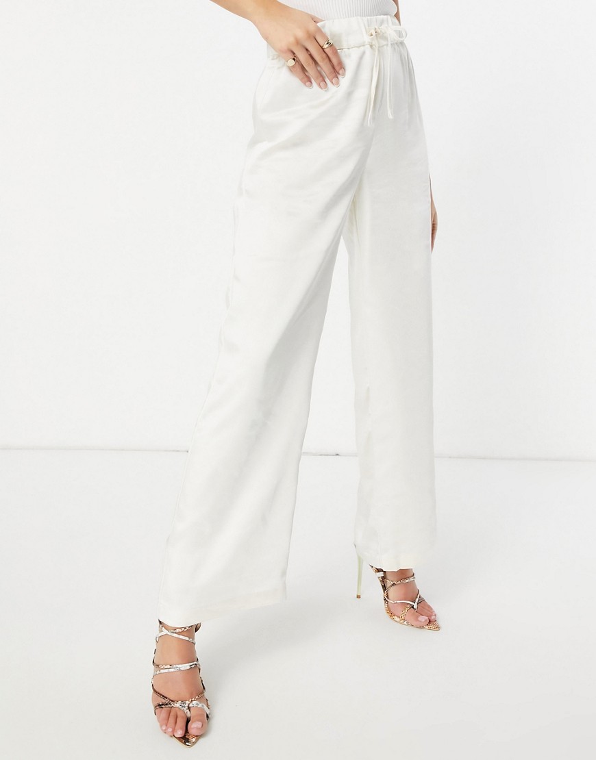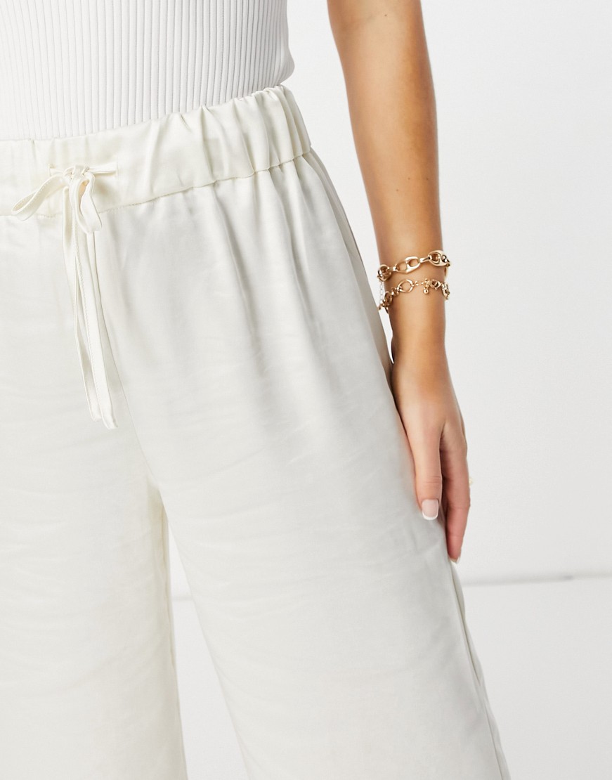 4th & Reckless kremowe satynowe spodnie z rozszerzanymi nogawkami 38
