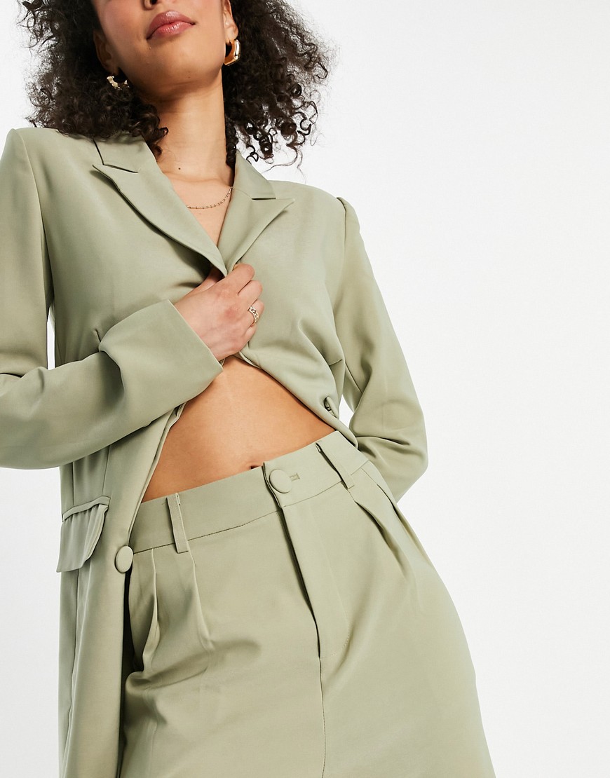 4th + Reckless Tall damskie spodnie garniturowe z szerokimi nogawkami khaki 44