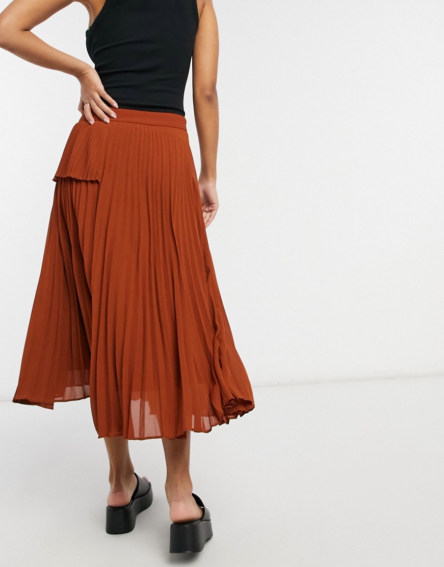 87 Origins asymetryczna plisowana spódnica midi brązowa defekt 42