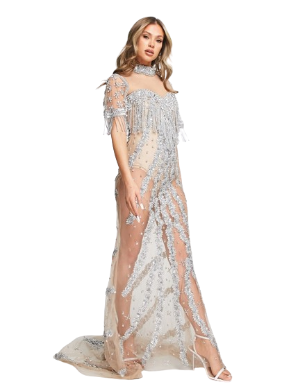 A Star Is Born przezroczysta sukienka maxi ze srebrnym zdobieniem 42