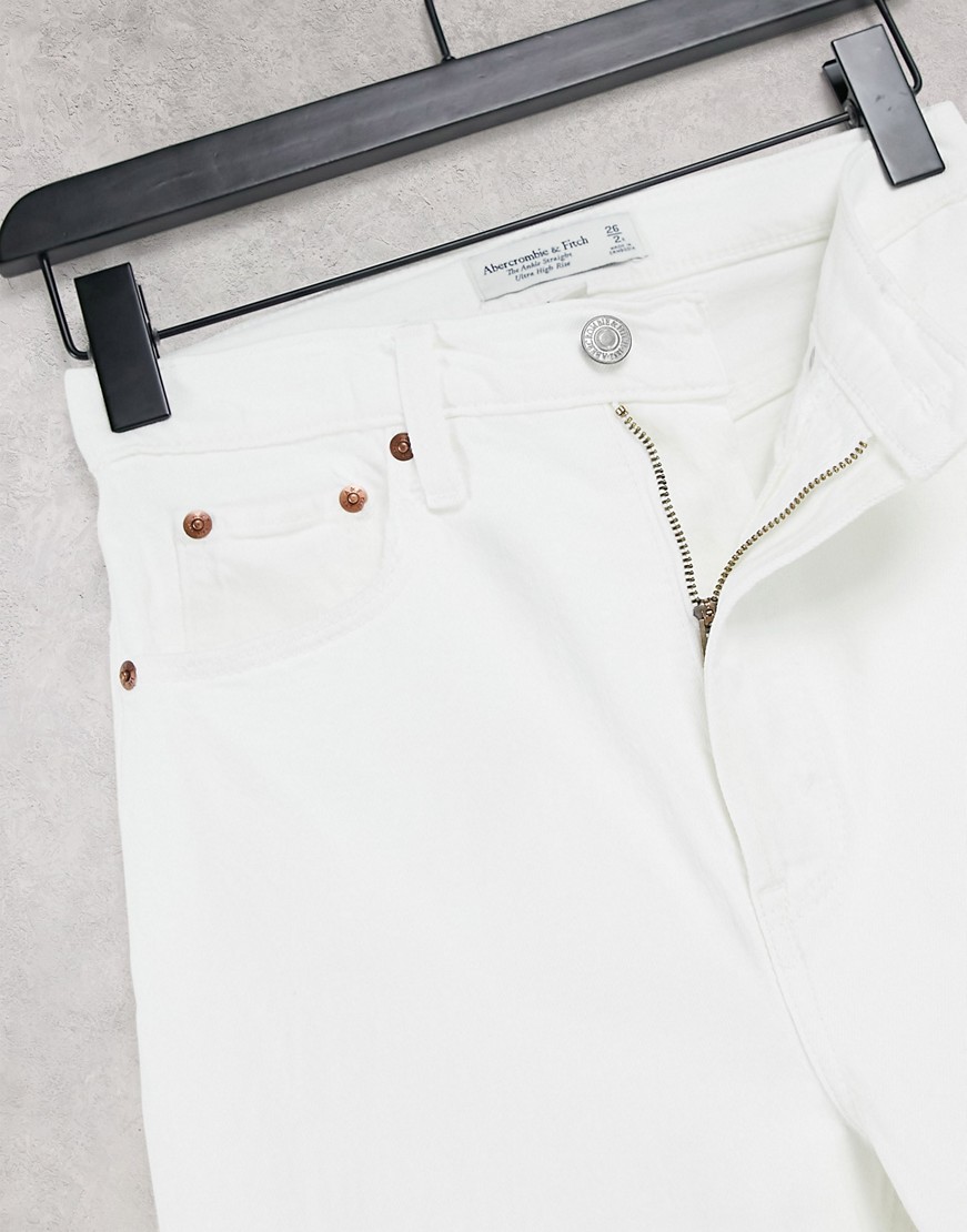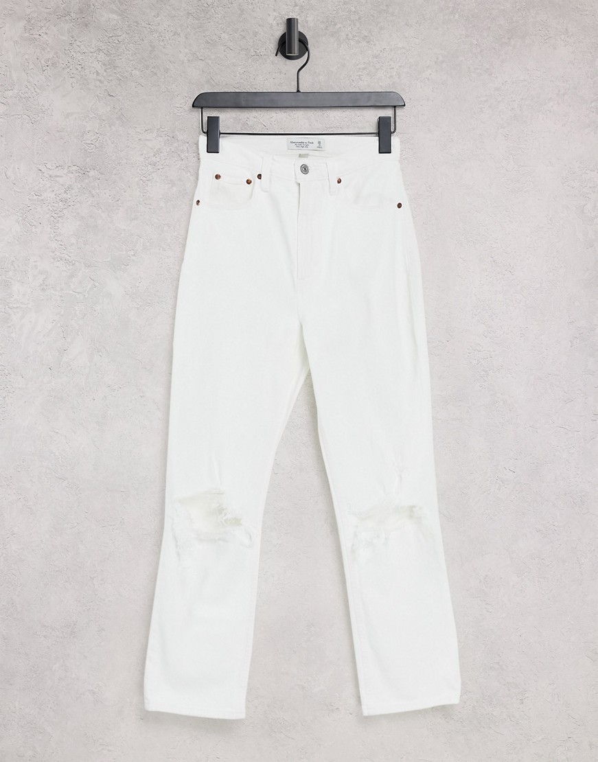 Abercrombie and Fitch białe jeansy z rozdarciami straight leg defekt W30 L28