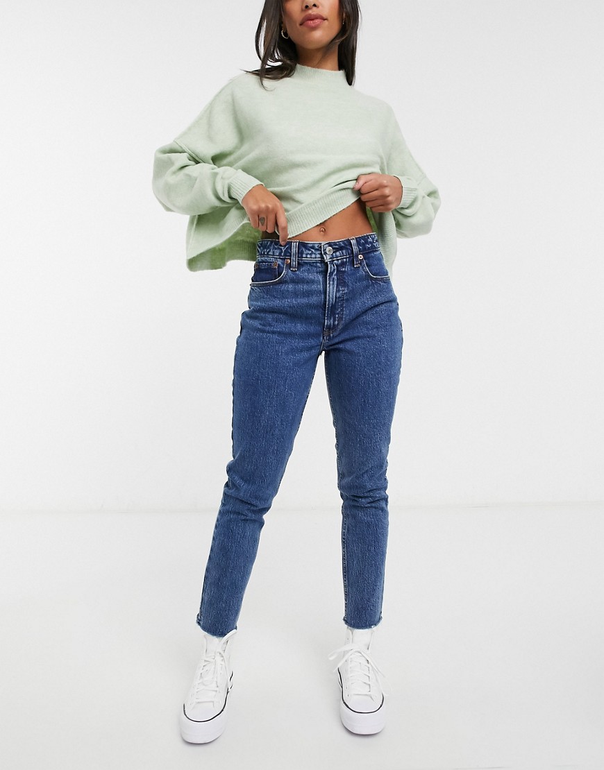 Abercrombie & Fitch Jeansy damskie mid wash defekt W28