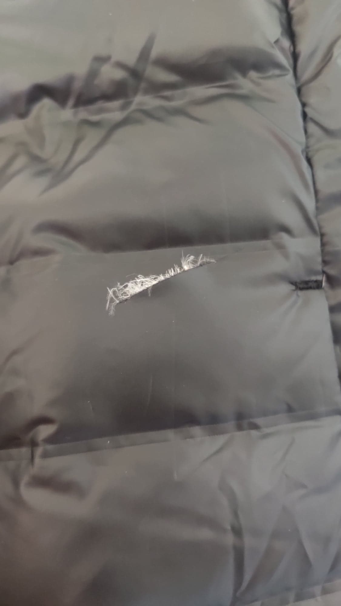 - Defekt: rozcięcie z przodu nad lewą kieszenią
