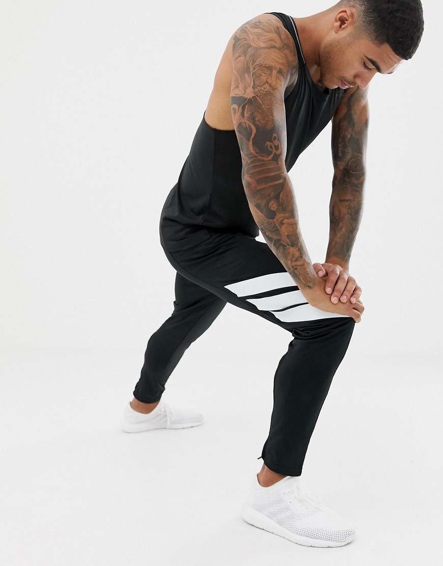 Adidas czarne joggery z paskami i logo defekt S