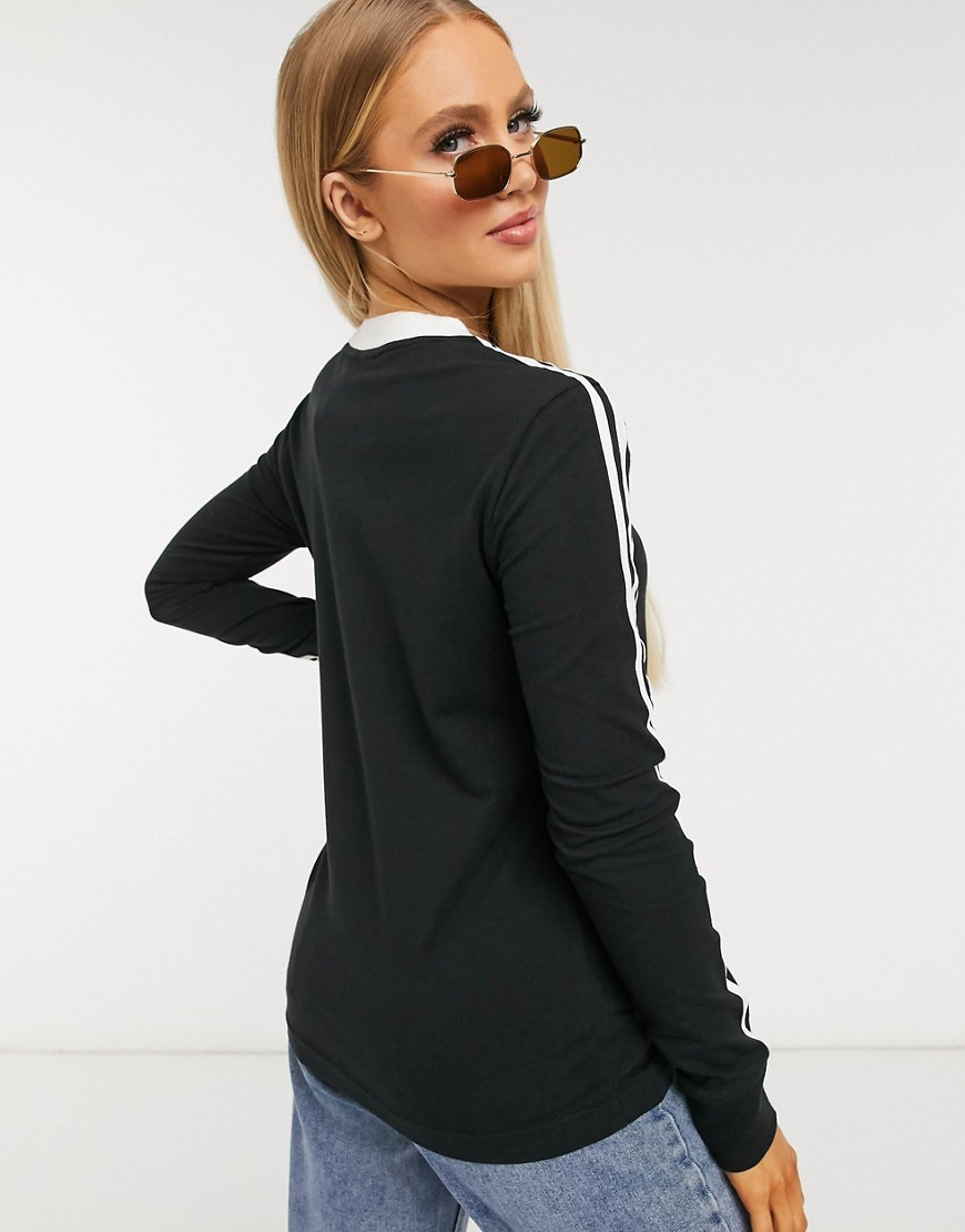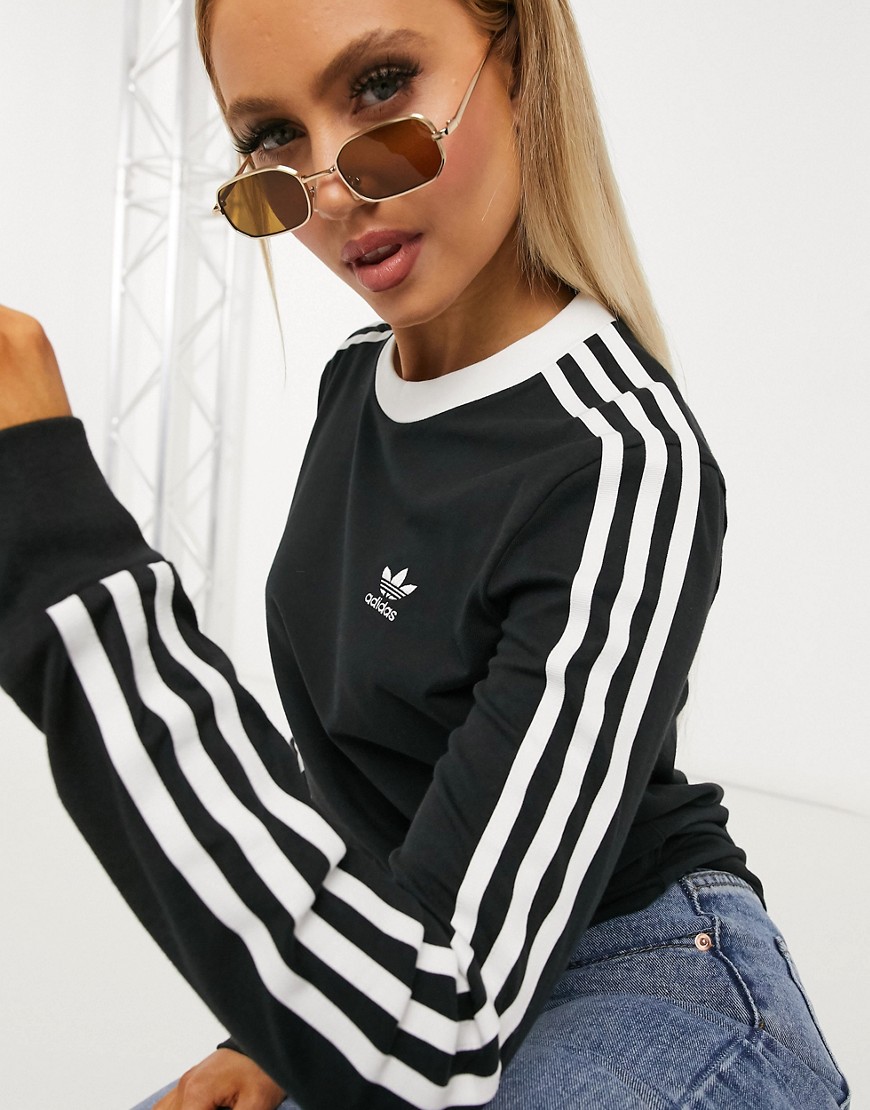 Adidas Czarny T-shirt damski z długim rękawem i trzema paskami 34