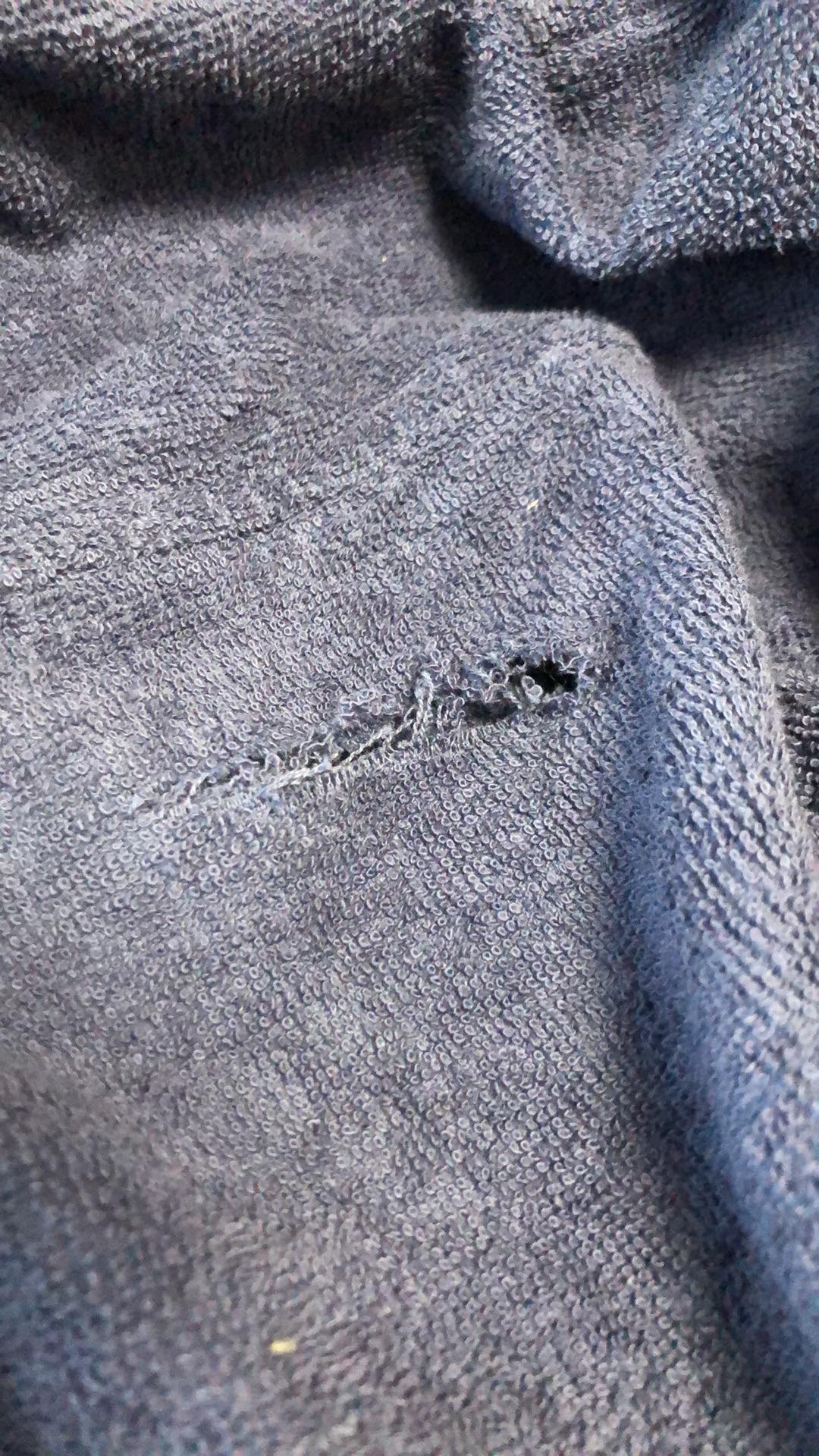 - Defekt: rozdarcie na kapturze
