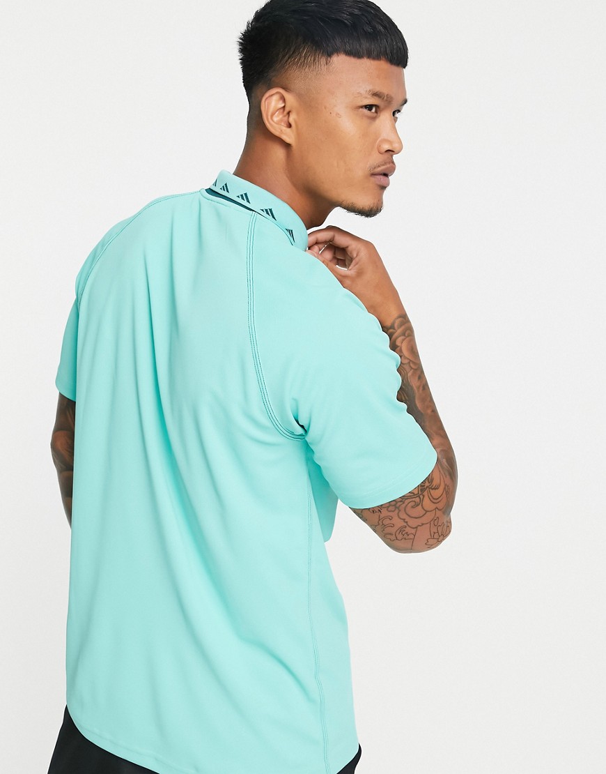 Adidas miętowa koszulka polo męska do połowy zapinana na zamek L