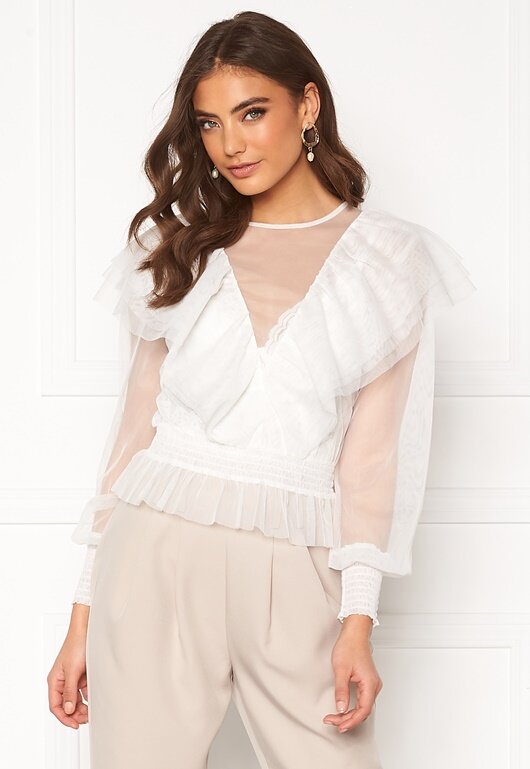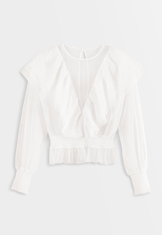 ALEXANDRA NILSSON X BUBBLEROOM biały tiulowy top z falbanką 42