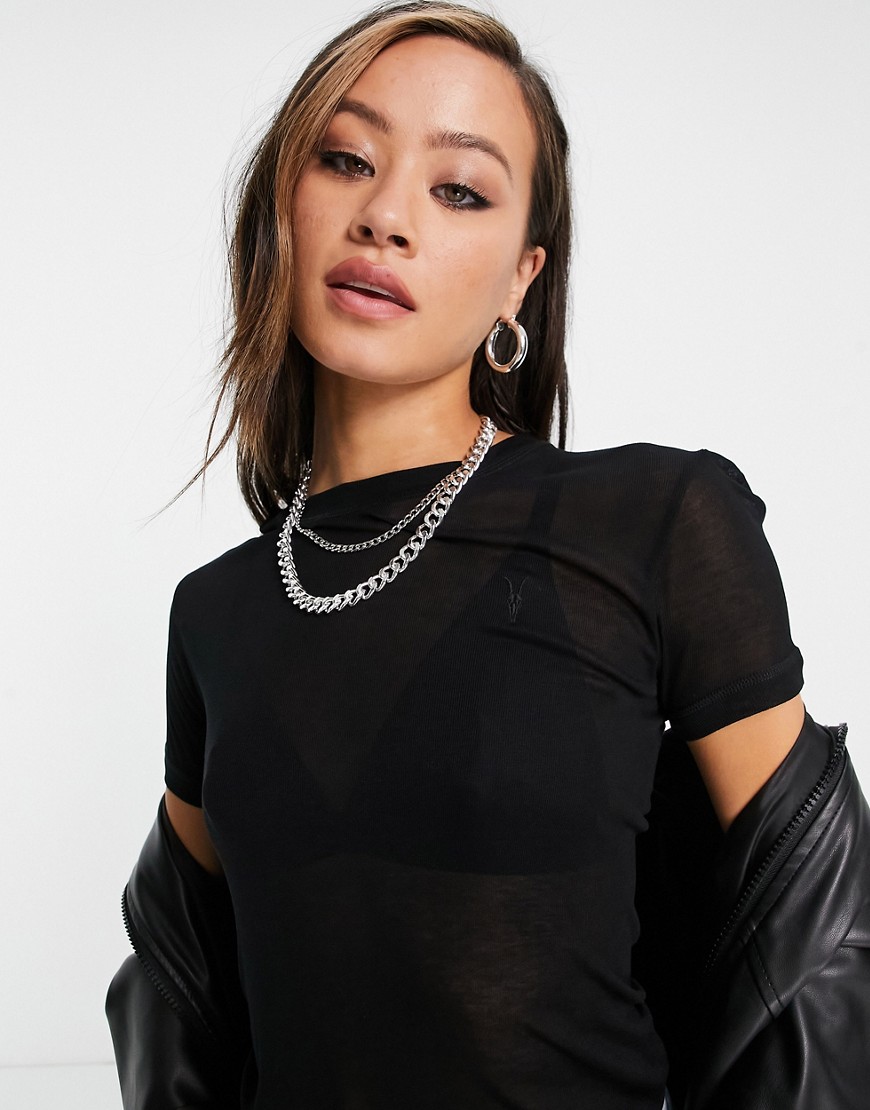 AllSaints Francesco czarny prześwitujący t shirt 36