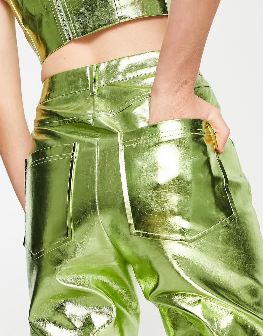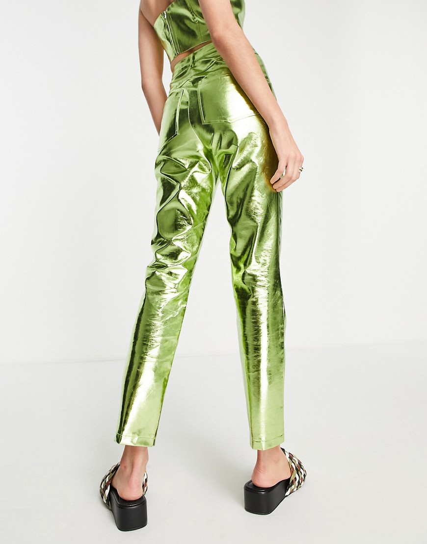 Annorlunda Limonkowe metaliczne spodnie 40