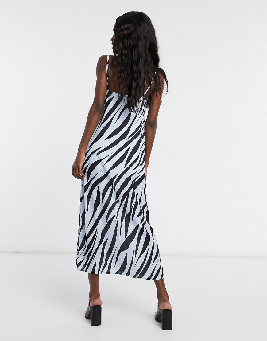 Another Reason sukienka midi na ramiączkach w zwierzęcy wzór niebieska 44