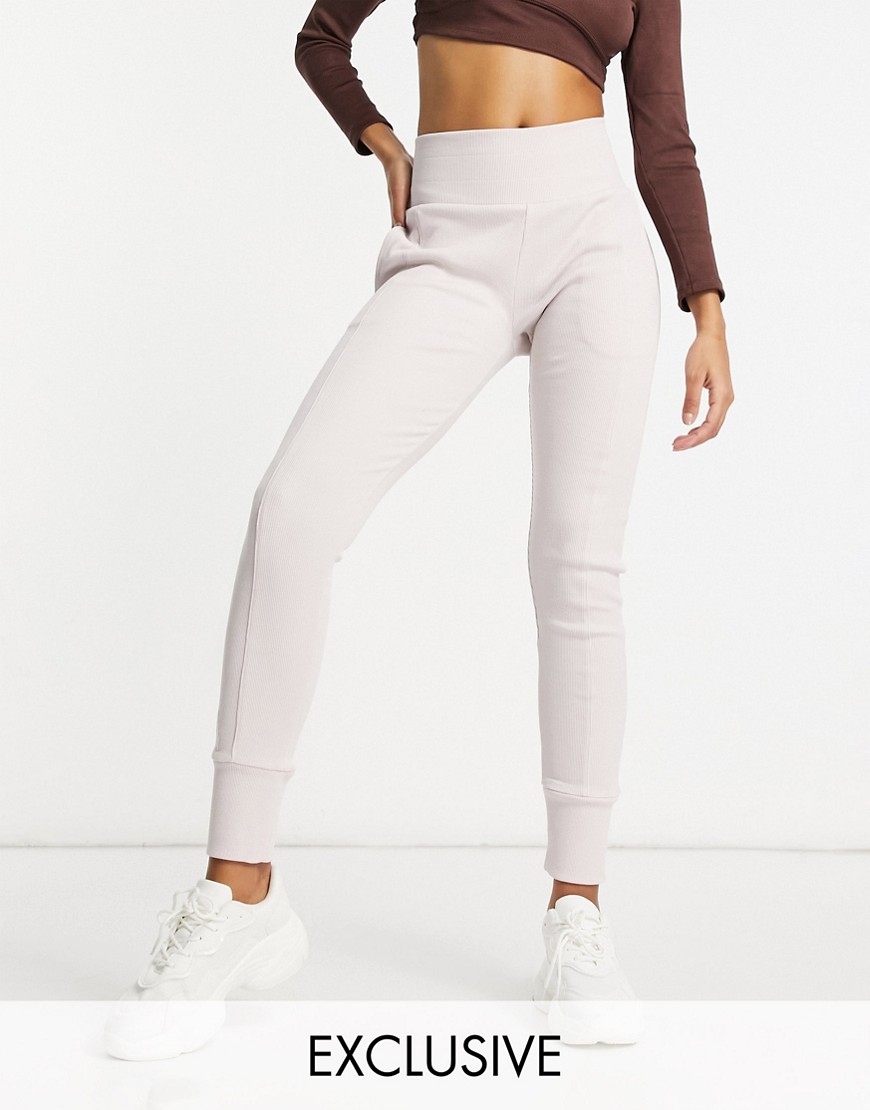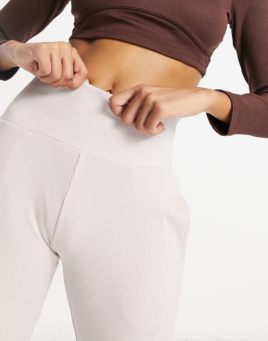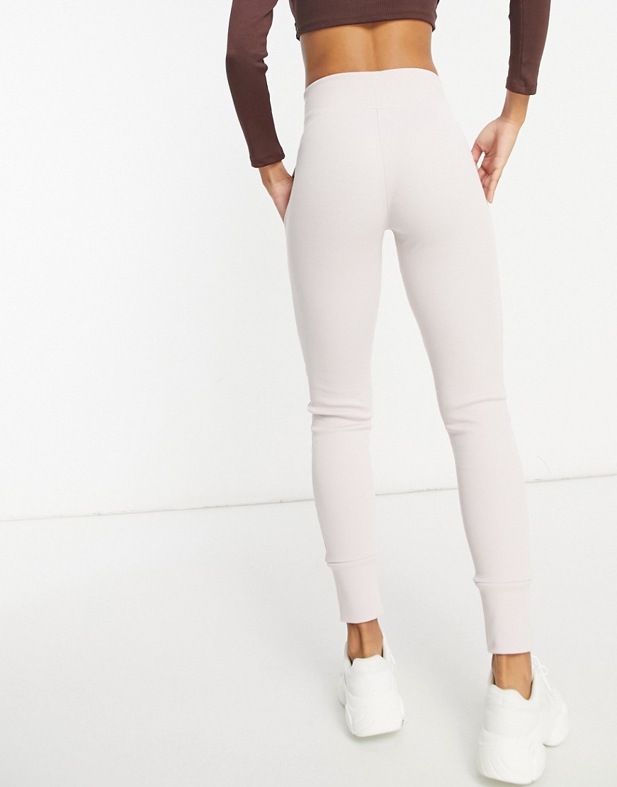 Asyou beżowe prążkowane legginsy z szerokim pasem S