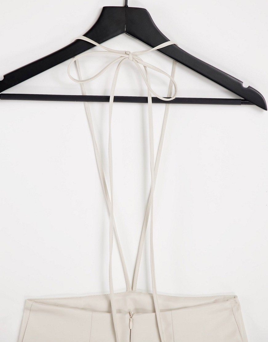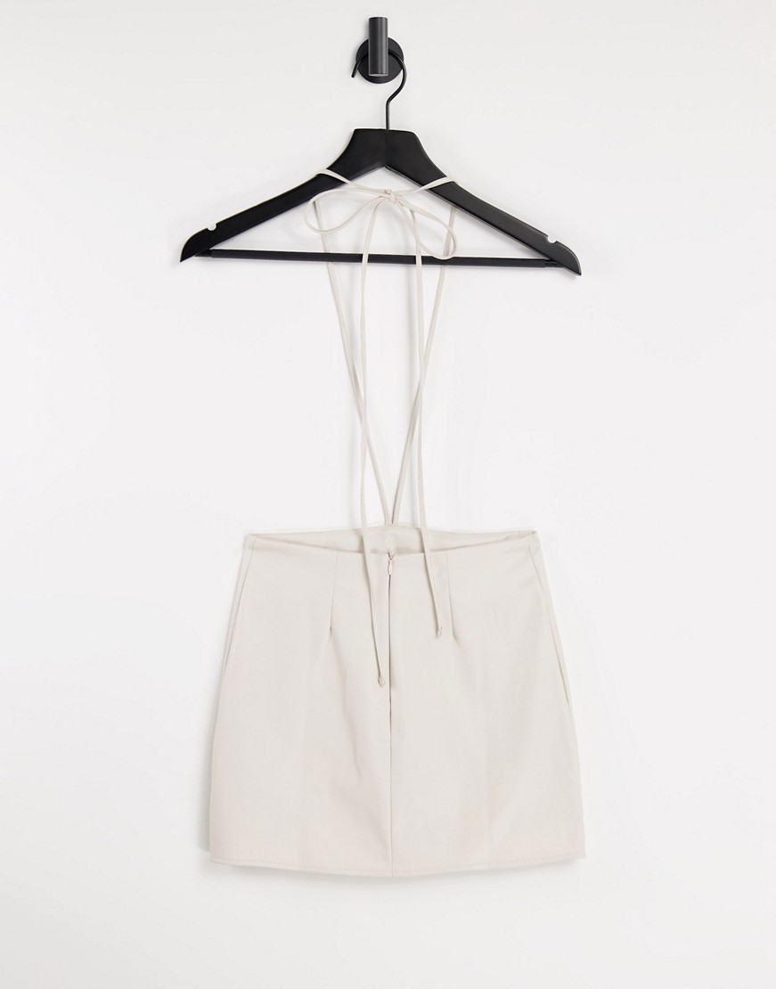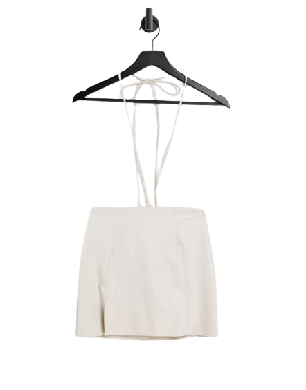 ASYOU biała spódnica mini z imitacja skóry pasek w talii 38