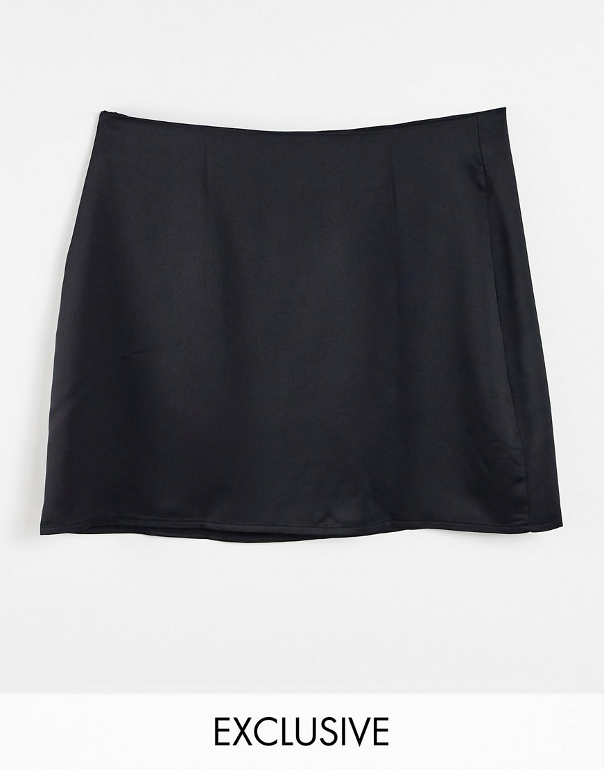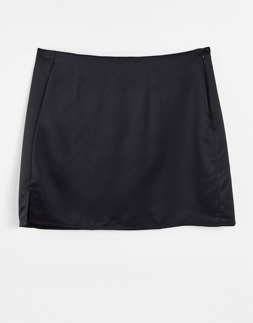 ASYOU czarna satynowa spódnica z rozcięciem u dołu 44