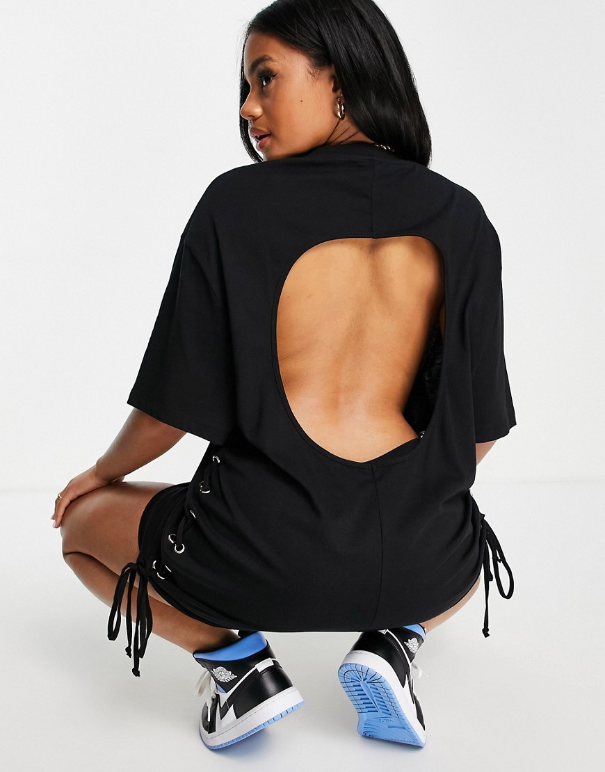 ASYOU czarna sukienka t-shirtowa z odkrytymi plecami i sznurowaniem 46