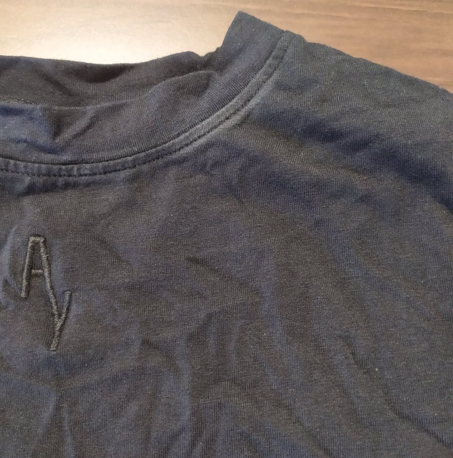 - Defekt : odbarwienie materiału przy szwie na szyi, zdjęcie w galerii produktu
