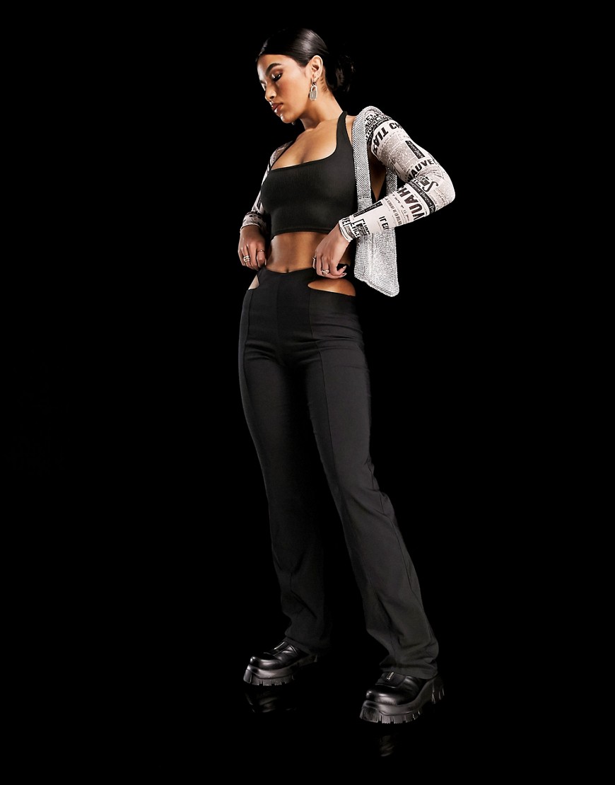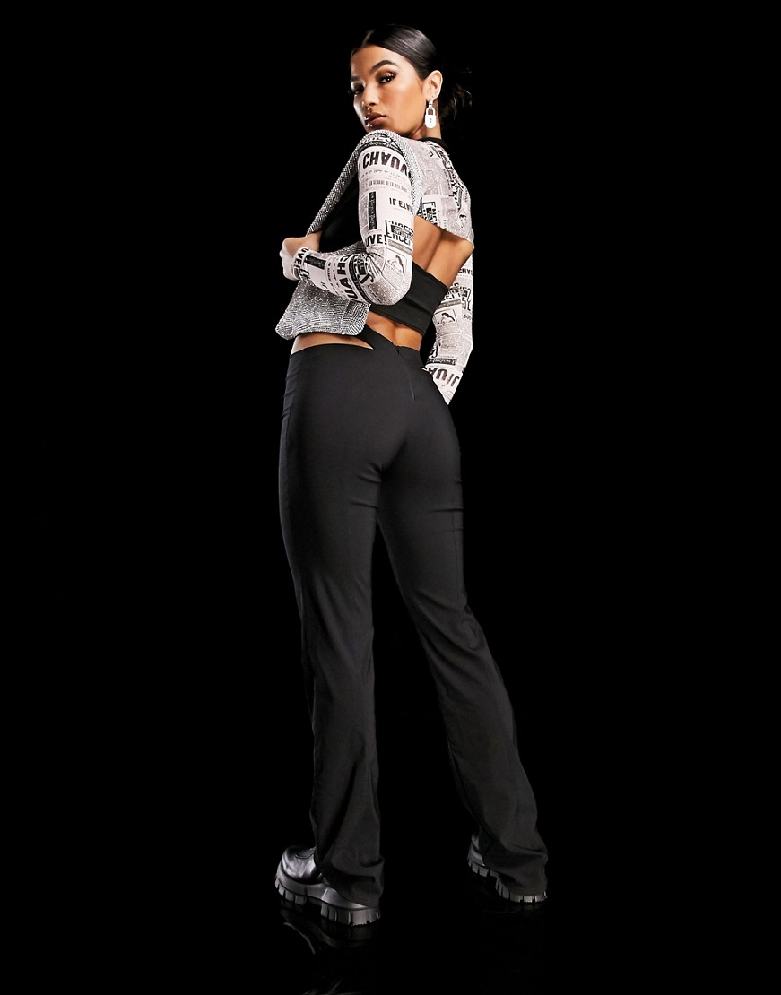ASYOU czarne dzwony w stylu lat 90. z wysokim stanem i wycięciami 38