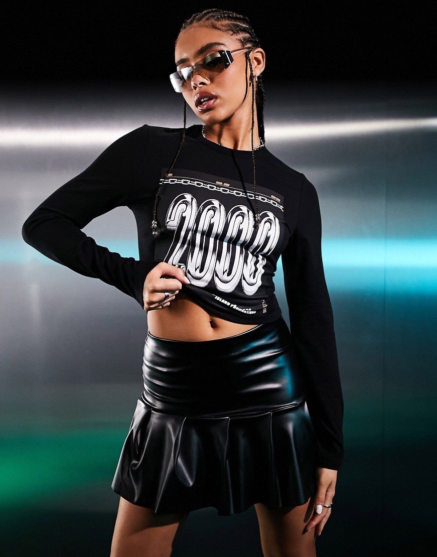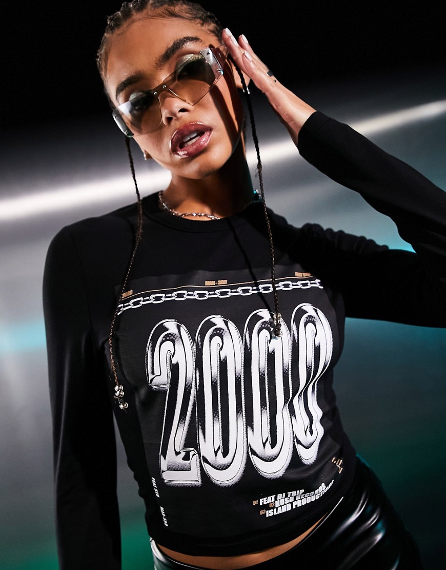 ASYOU czarny t-shirt z długimi rękawami i grafiką 2000 40