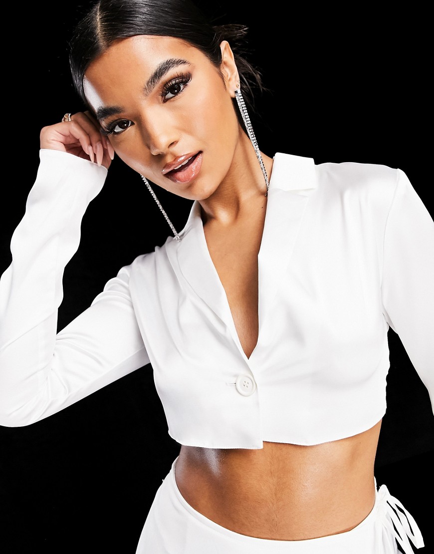 AsYou krótka dopasowana satynowa koszula ivory 32