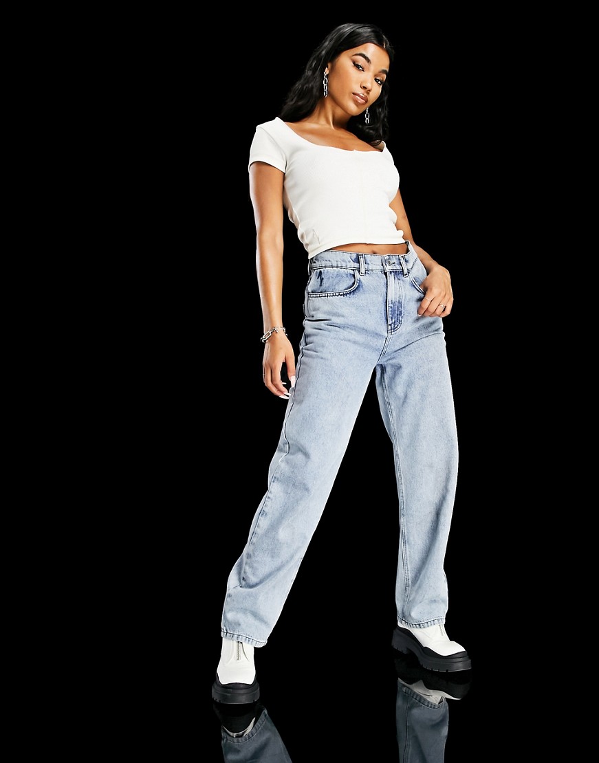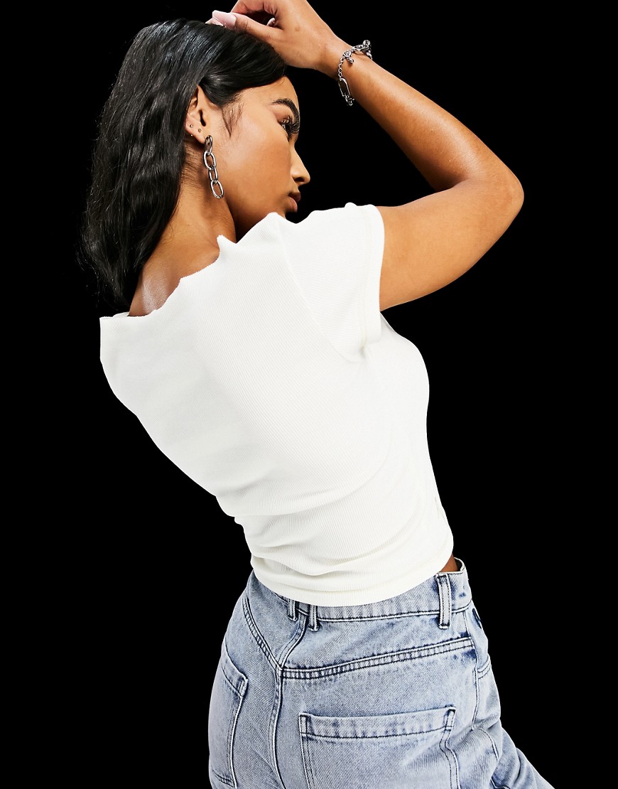 ASYOU Krótki prążkowany tshirt o dopasowanym kroju ecru 42