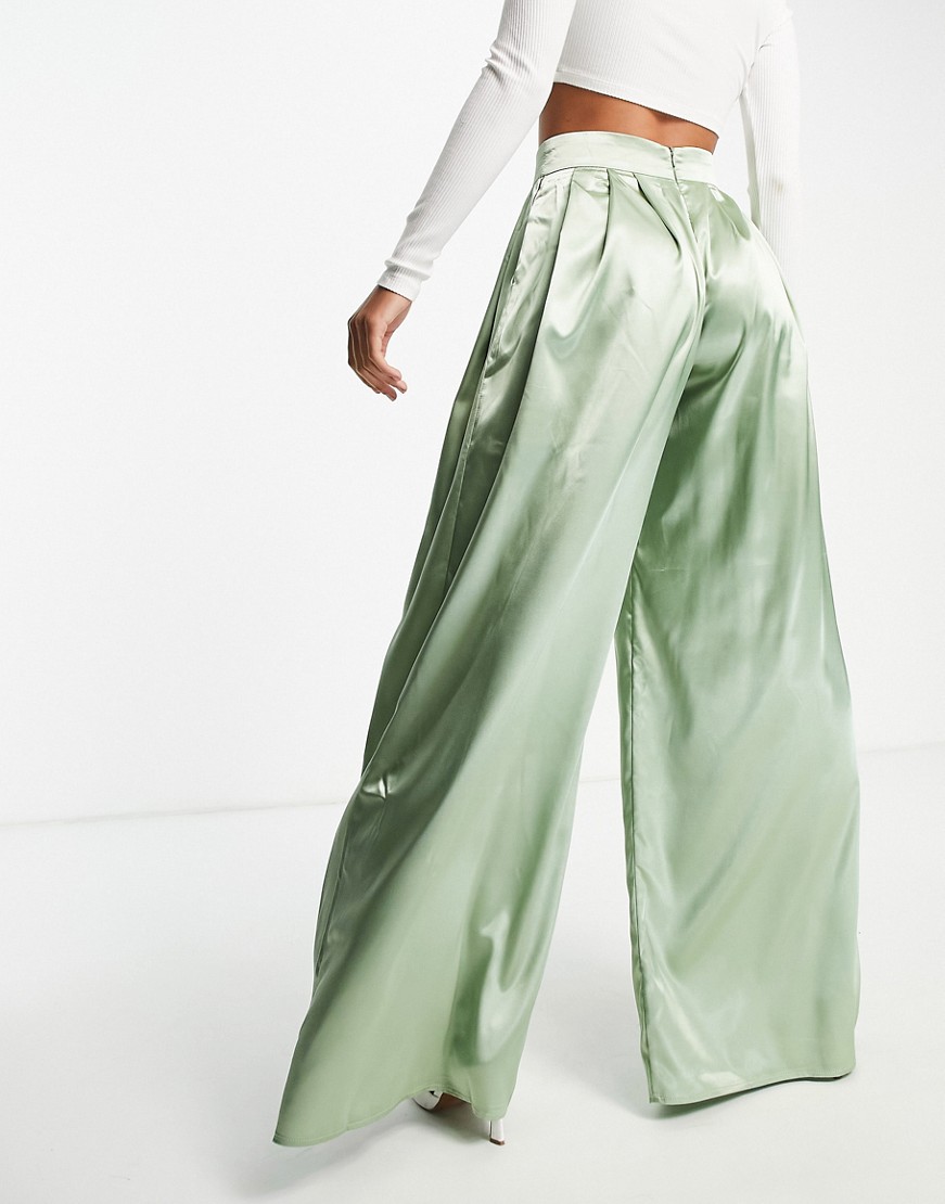 AsYou miętowe satynowe spodnie z szerokimi nogawkami defekt 38