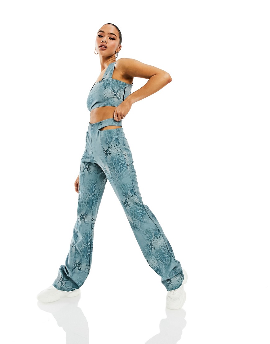 ASYOU niebieskie dzwony z wycięciami i wężowym wzorem 38