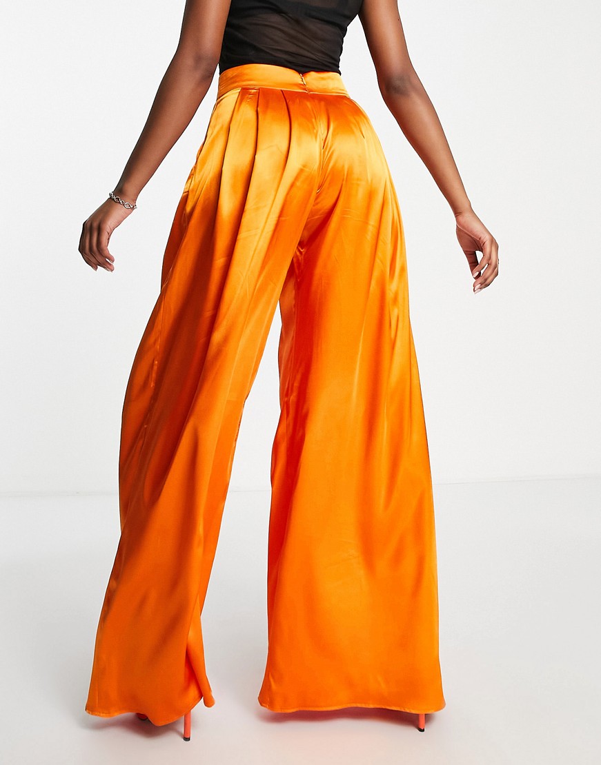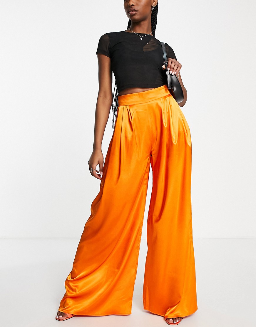 ASYOU Pomarańczowe satynowe spodnie z szerokimi nogawkami defekt 38