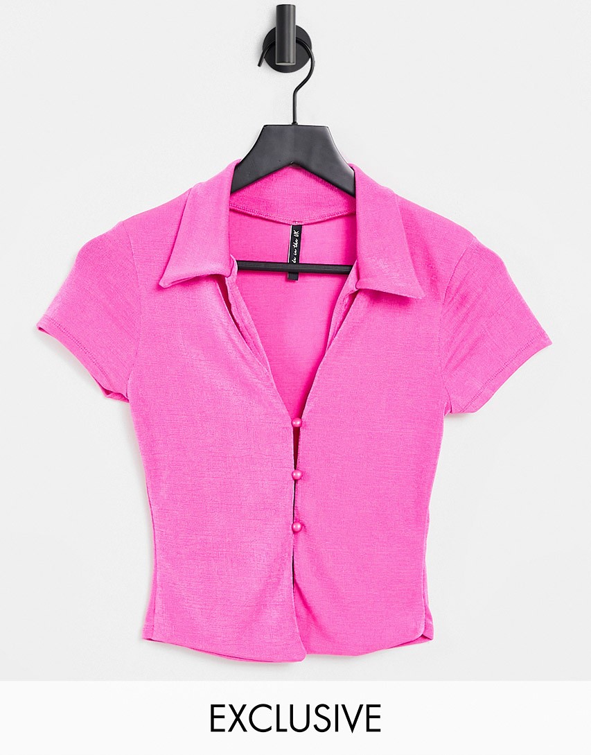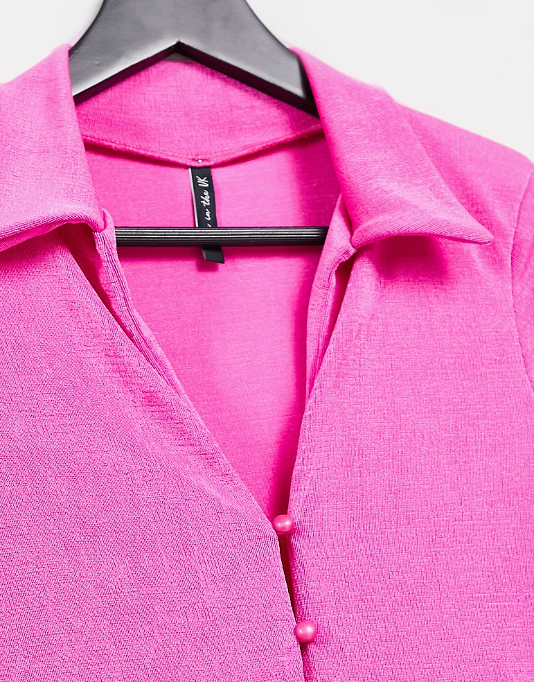 ASYOU różowa koszula z krótkim rękawem o dopasowanym kroju 44