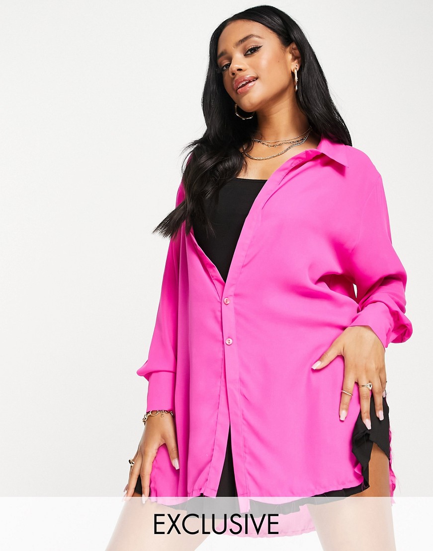 ASYOU różowa przezroczysta sukienka koszulowa z postrzępionym dołem 40