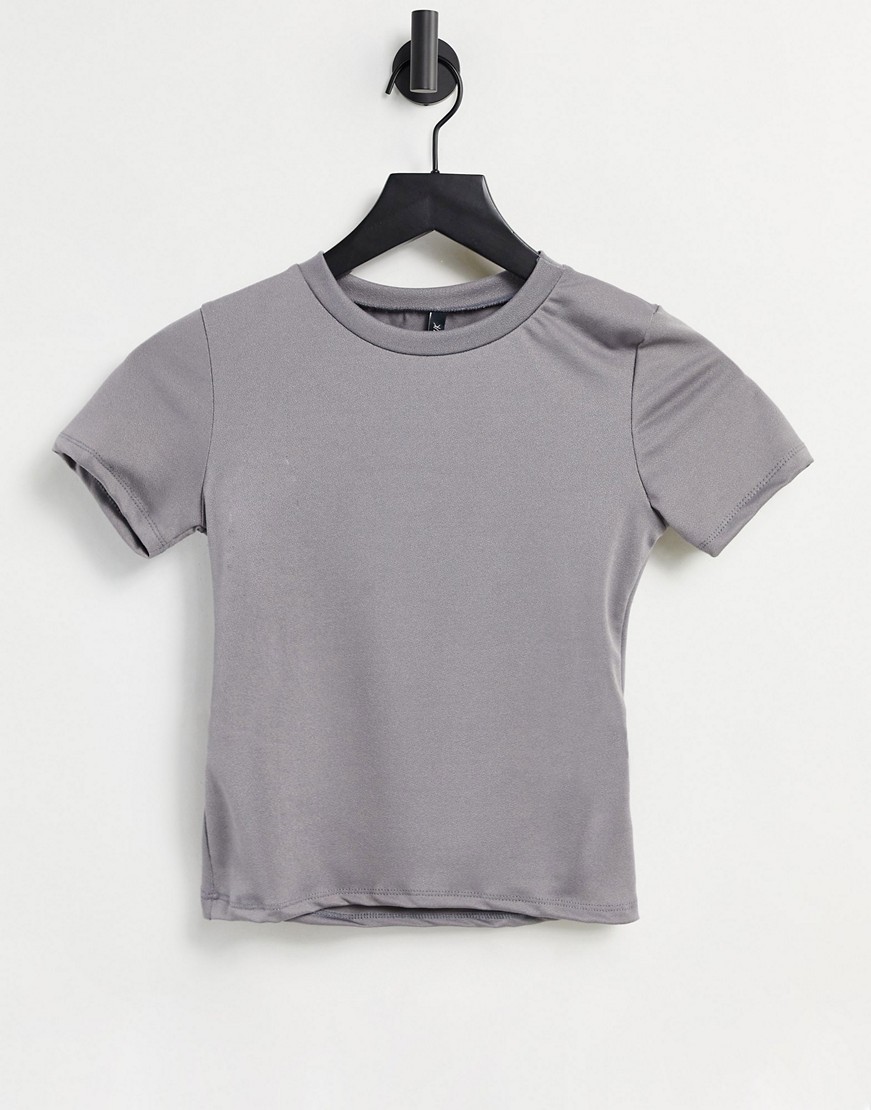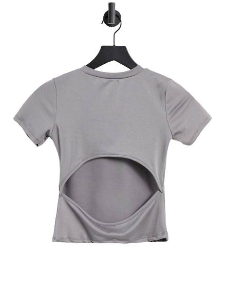 ASYOU szary T-shirt z krótkim rękawem z wycięciem na plecach 42