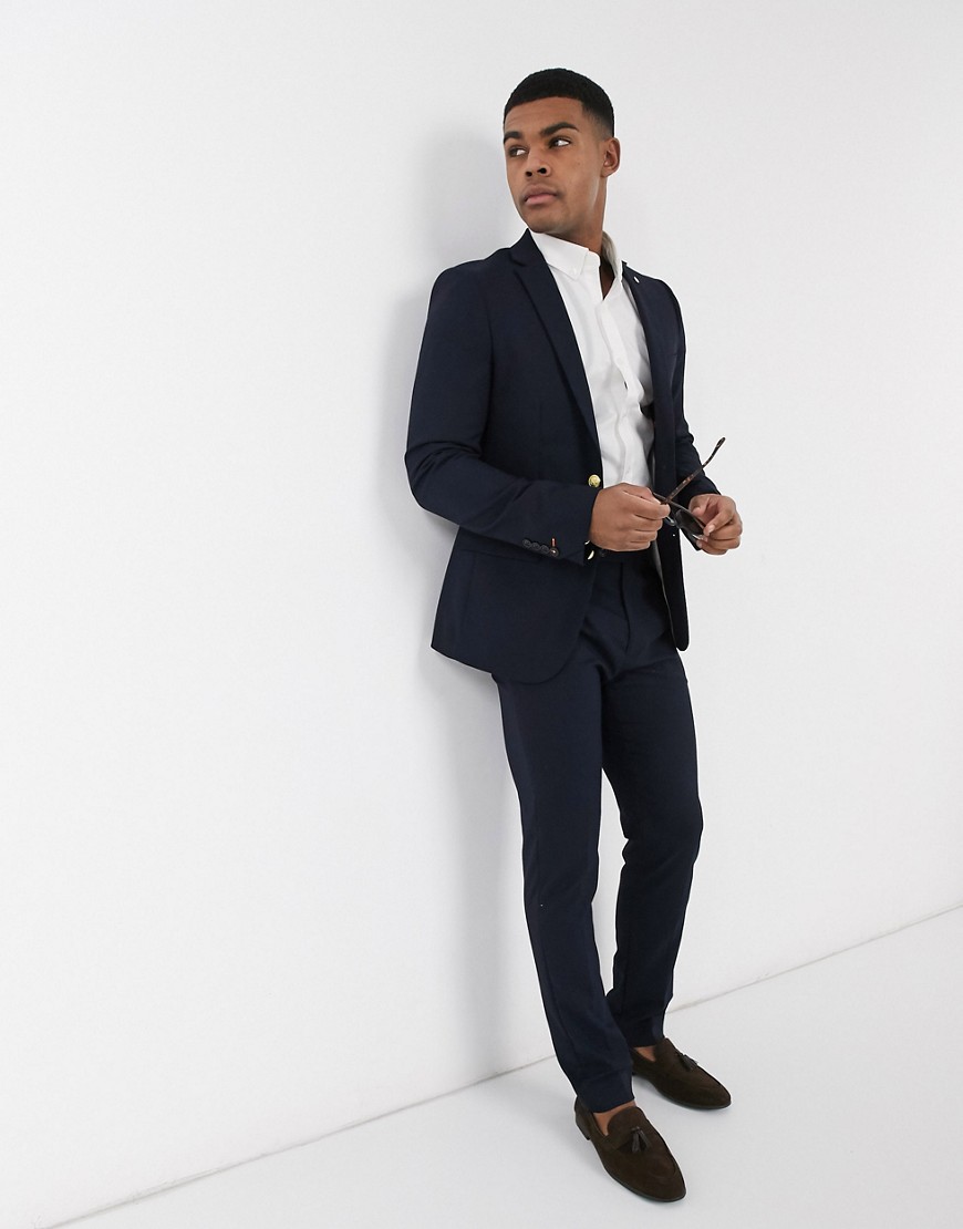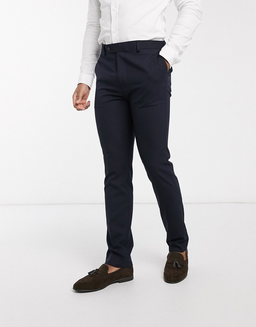 Avail London – Granatowe spodnie garniturowe o obcisłym kroju W30 L30