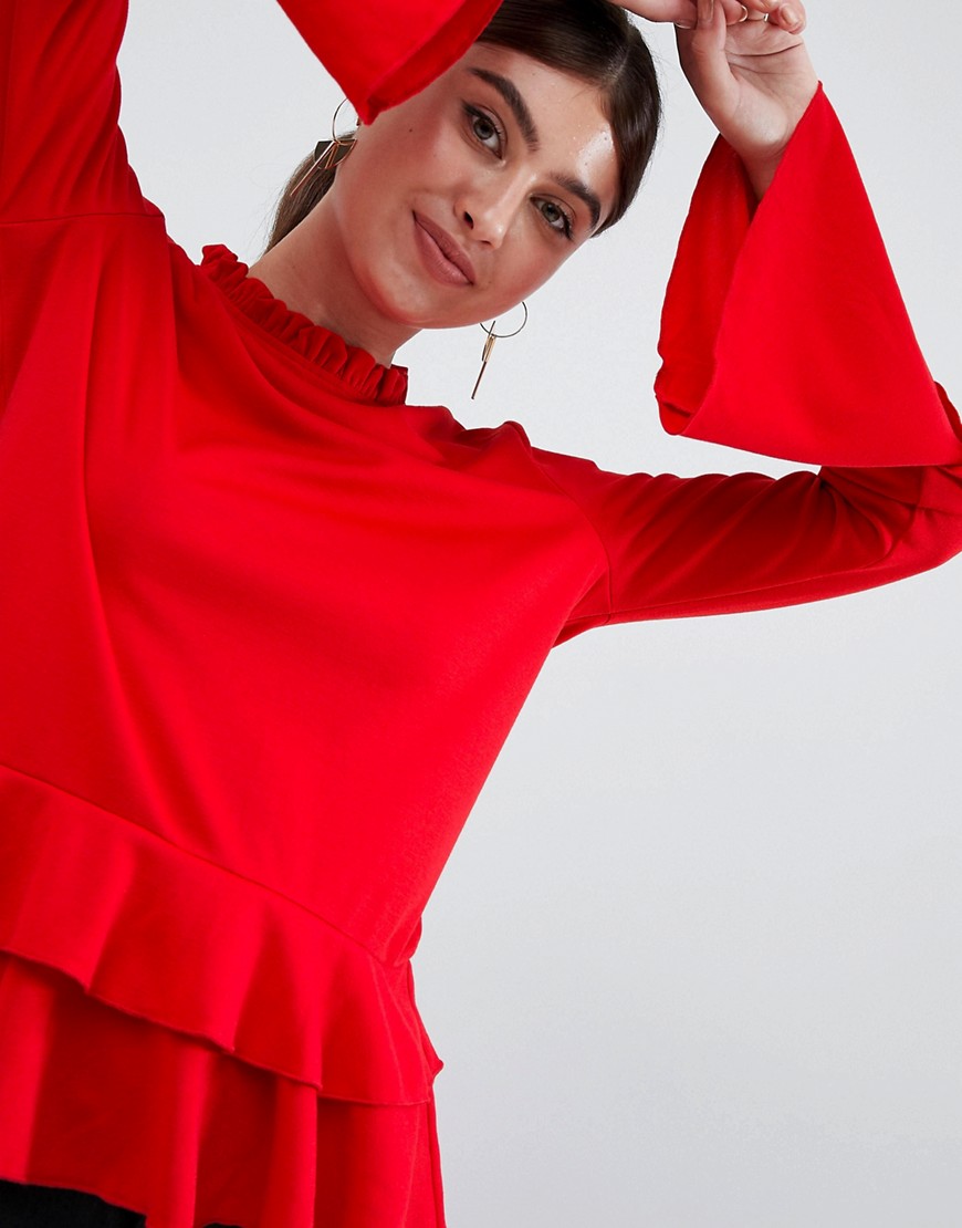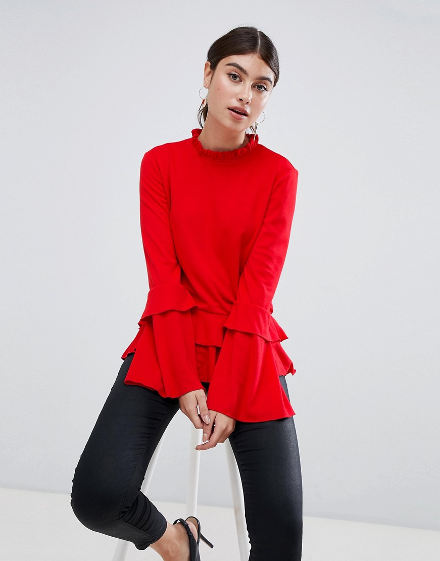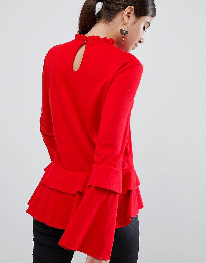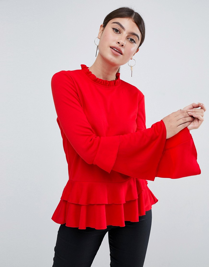 AX Paris Czerwona Bluzka falbana długi rękaw XL 42