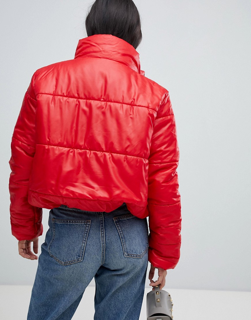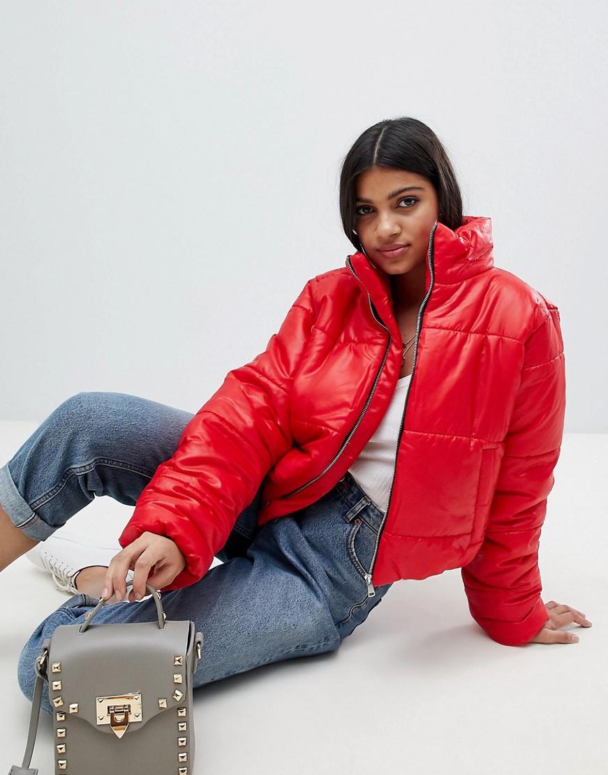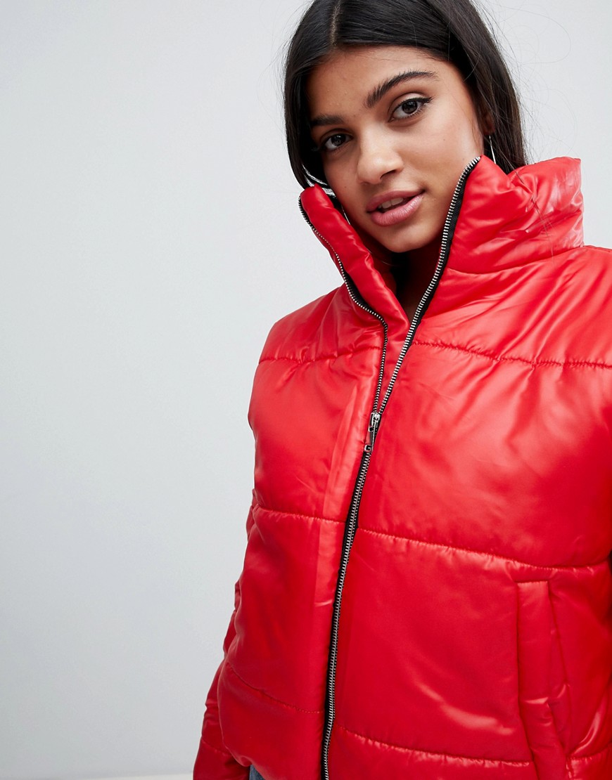 AX Paris czerwona kurtka ocieplana pikowana z połyskiem 36
