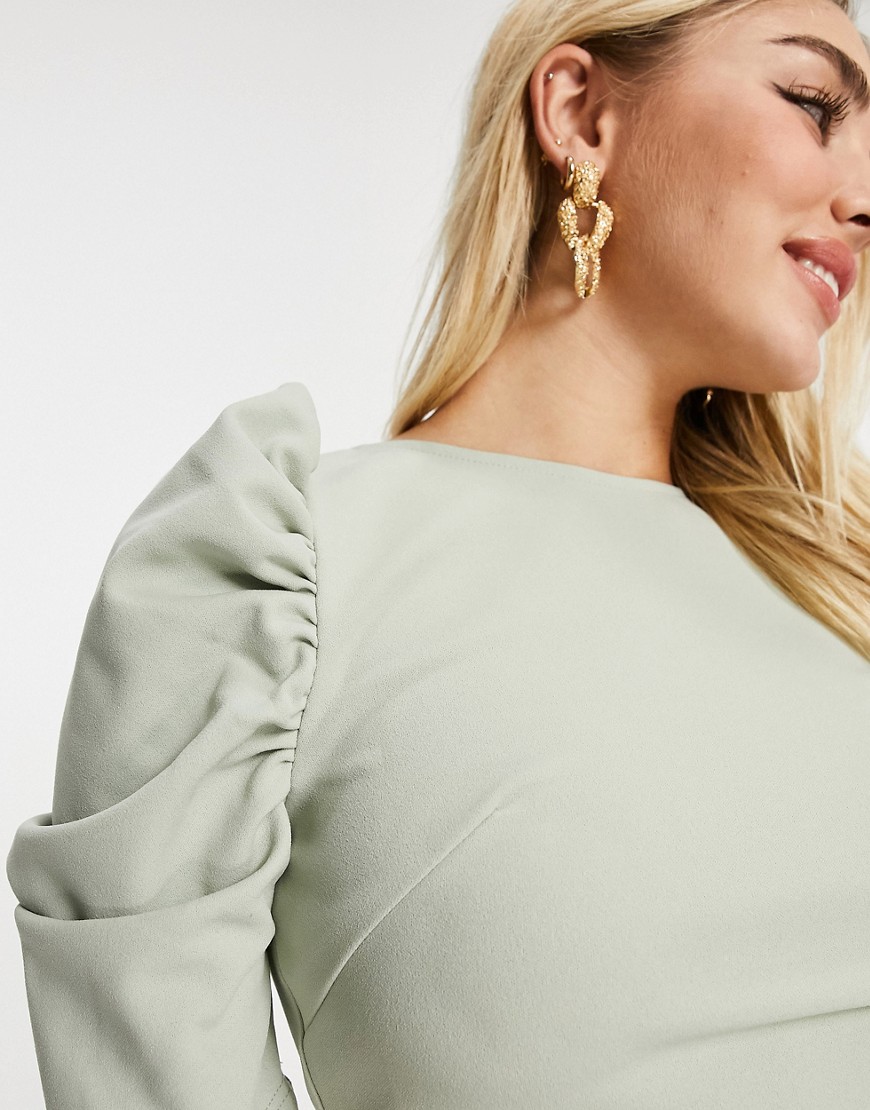 AX Paris obcisła zielona sukienka midi z bufiastymi rękawami 42