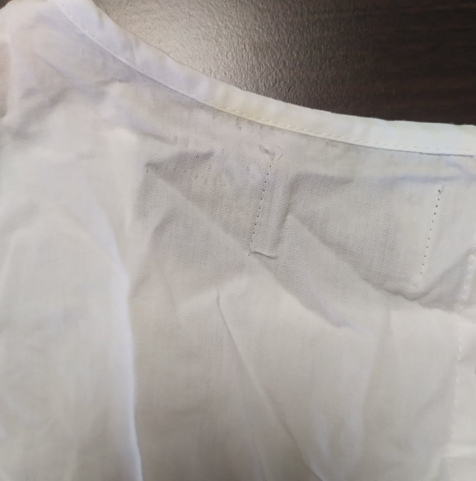 • Defekt przebrarwienie materiału na szwie przy szyi, tył koszulki, zdjęcie w galerii produktu