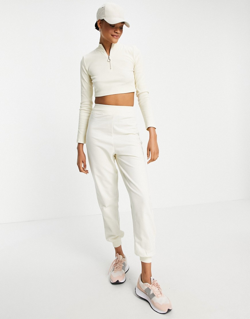Beżowa prążkowana krótka bluza na zamek 1/4 longsleeve 42