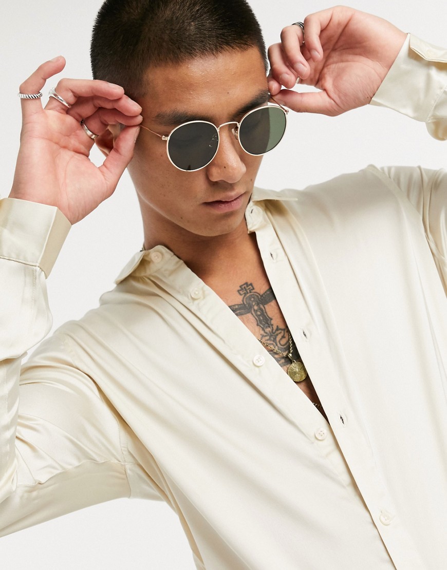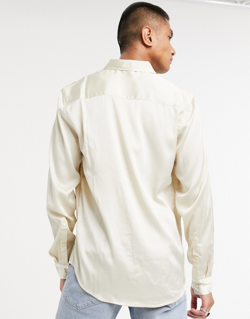 Beżowa satynowa męska koszula o regularnym kroju S