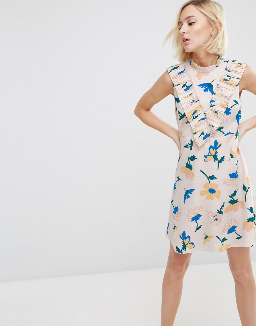 ASOS beżowa sukienka w kwiaty