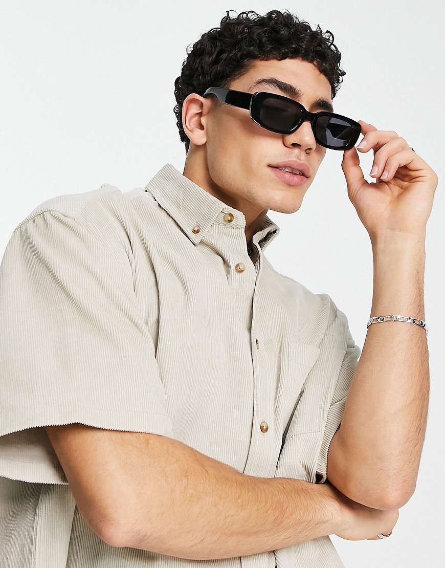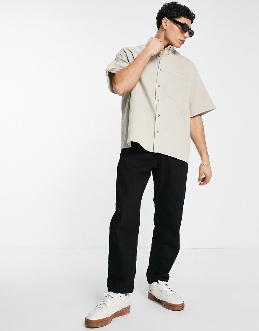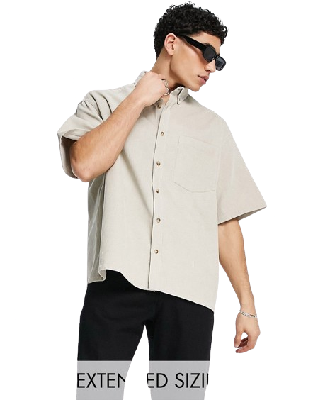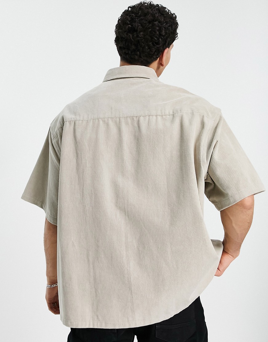 Beżowa sztruksowa koszula oversize z krótkim rękawem o pudełkowym kroju defekt 2XS