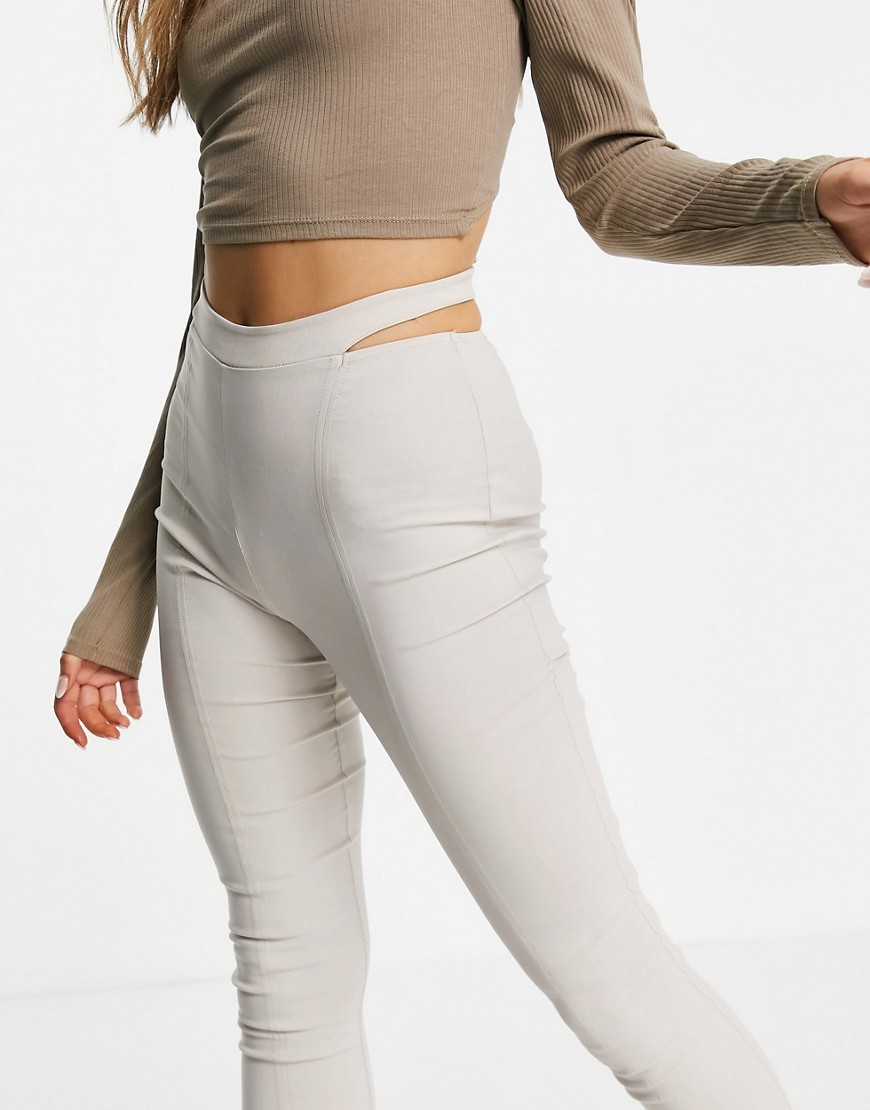 Beżowe damskie spodnie flare dzwony z wycięciami w talii S
