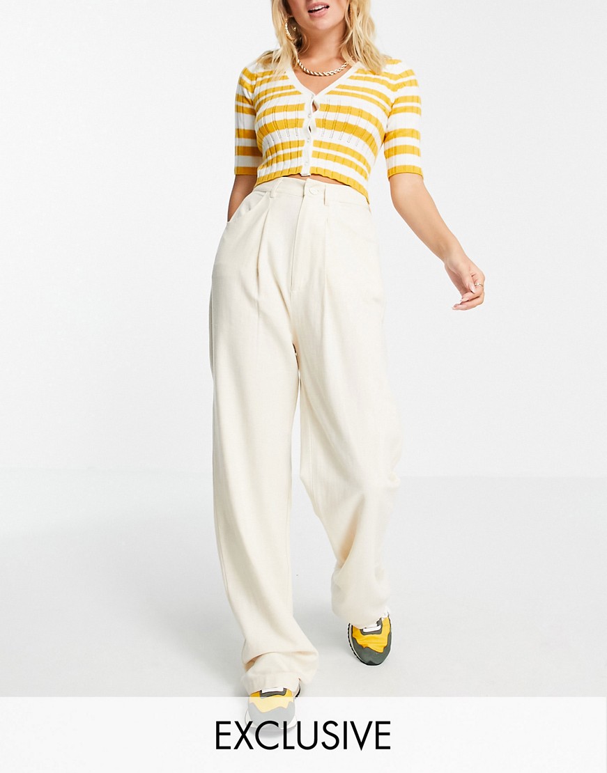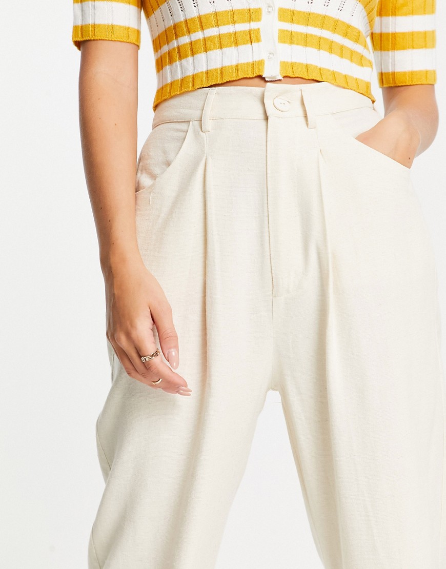 Beżowe lniane spodnie dad fit z szerokimi nogawkami defekt 42