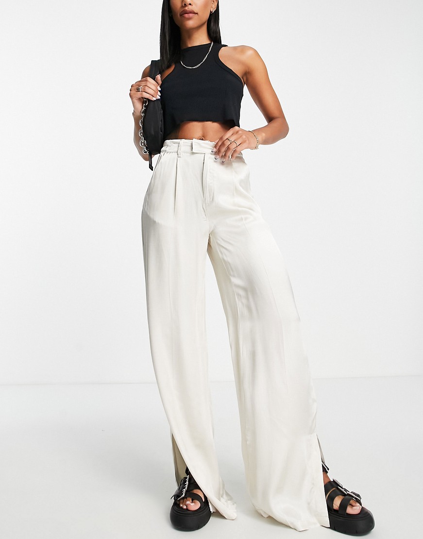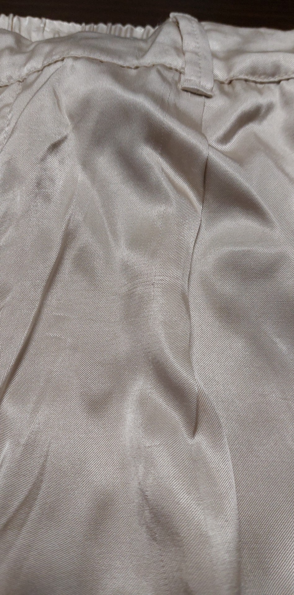 Beżowe satynowe spodnie damskie wide leg defekt L