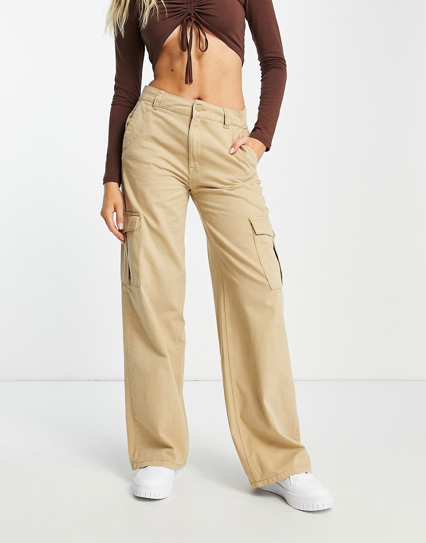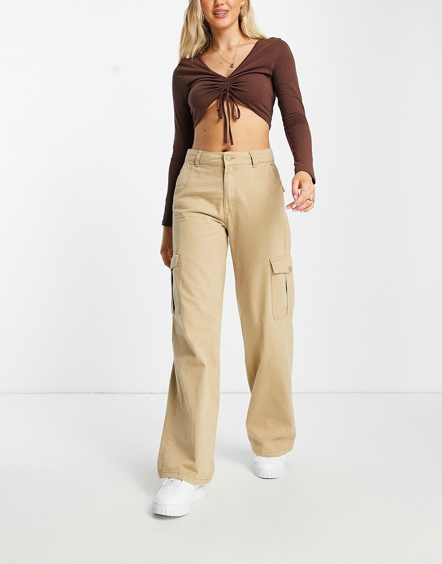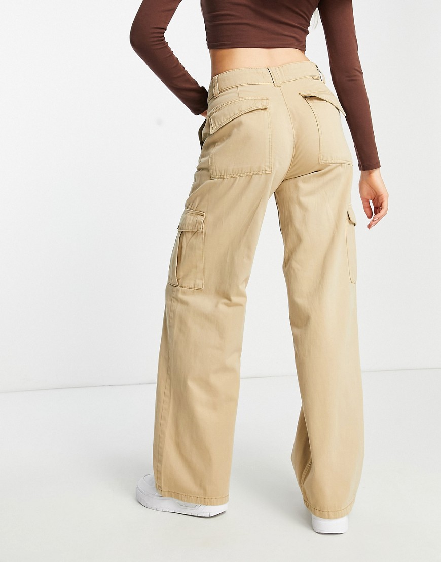 Beżowe spodnie cargo z szerokimi nogawkami z wysokim stanem 38