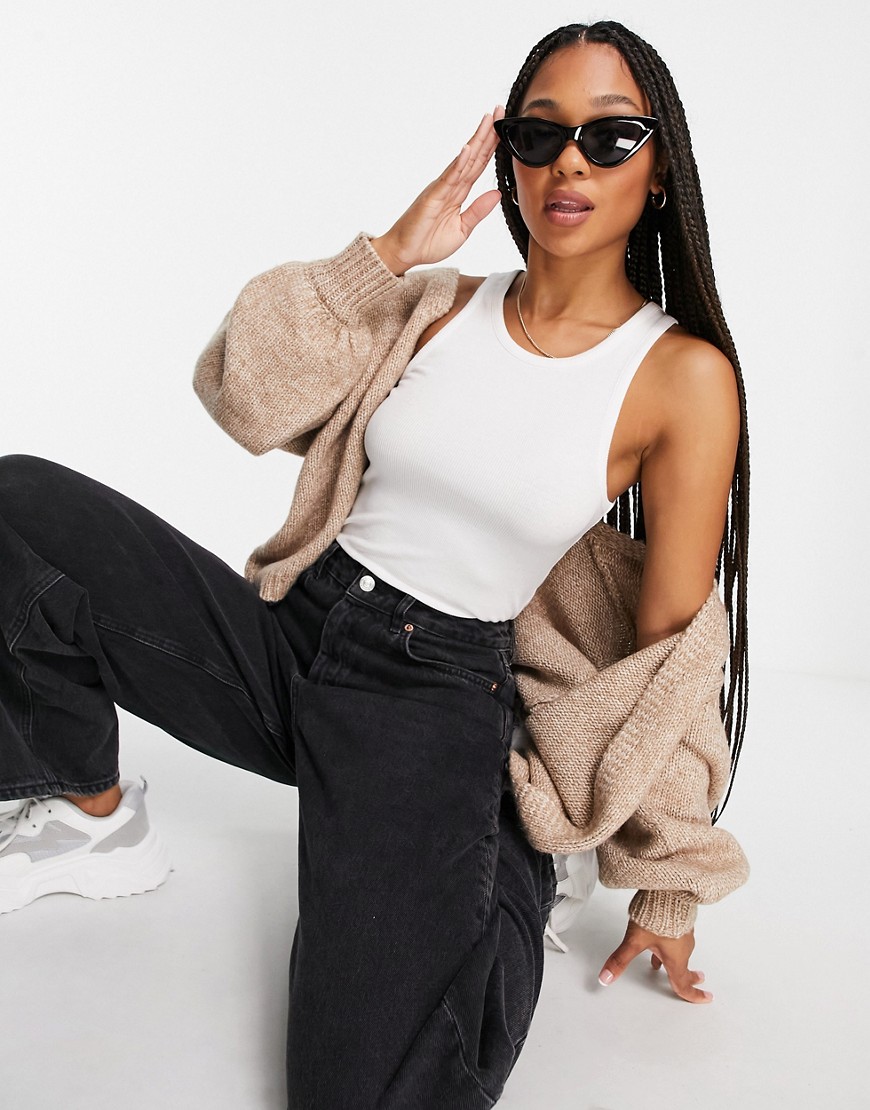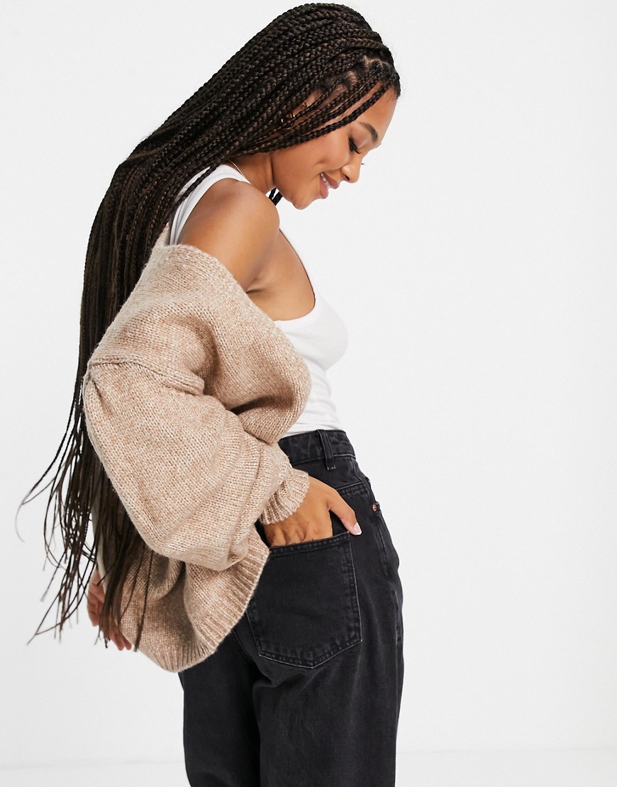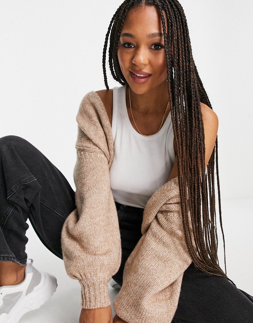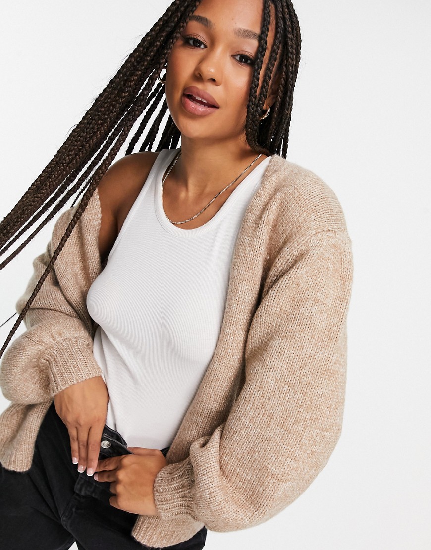 Beżowy kardigan o pudełkowym kroju bez zapięcia 38