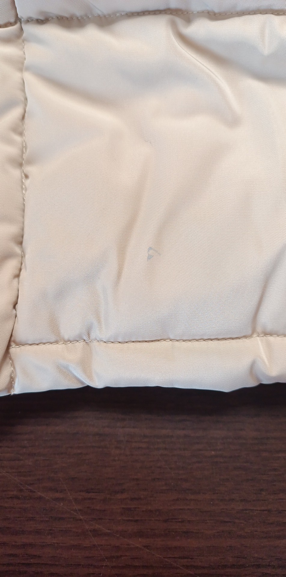 - defekt skaza na materiale z przodu na dole, zabrudzenie na prawym rękawie z tyłu