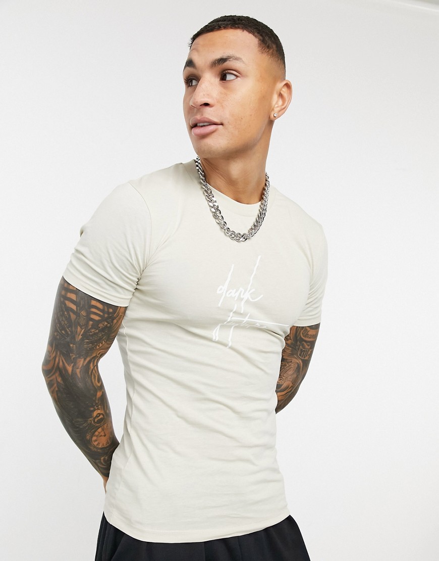 Beżowy T-shirt z logo o kroju podkreślającym sylwetkę M