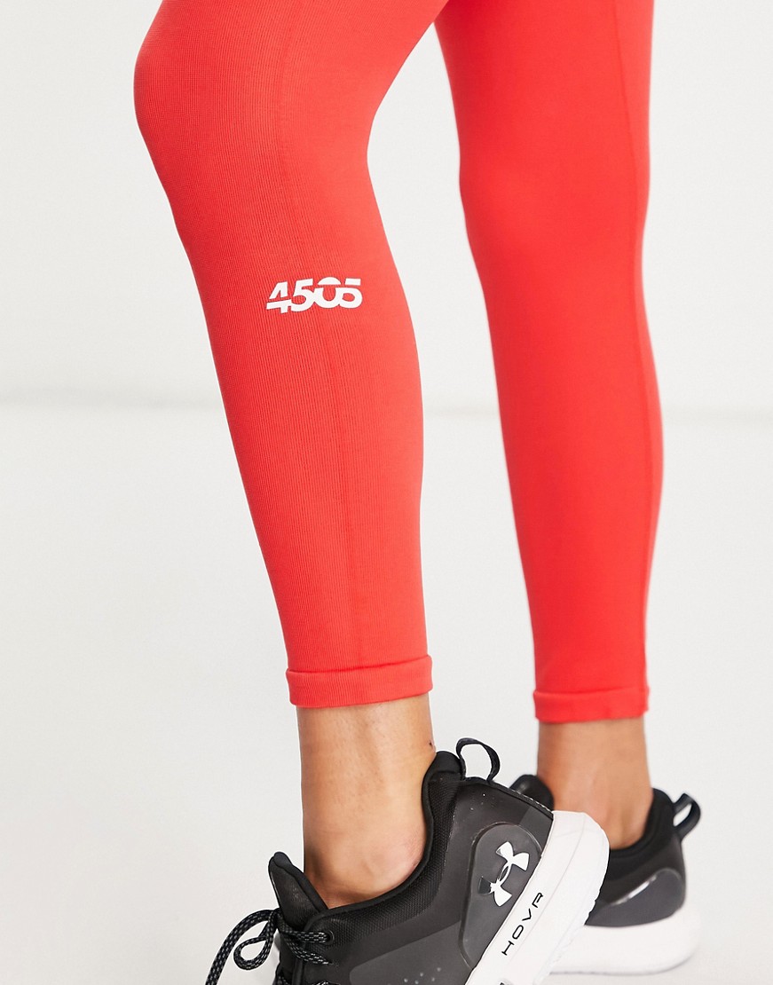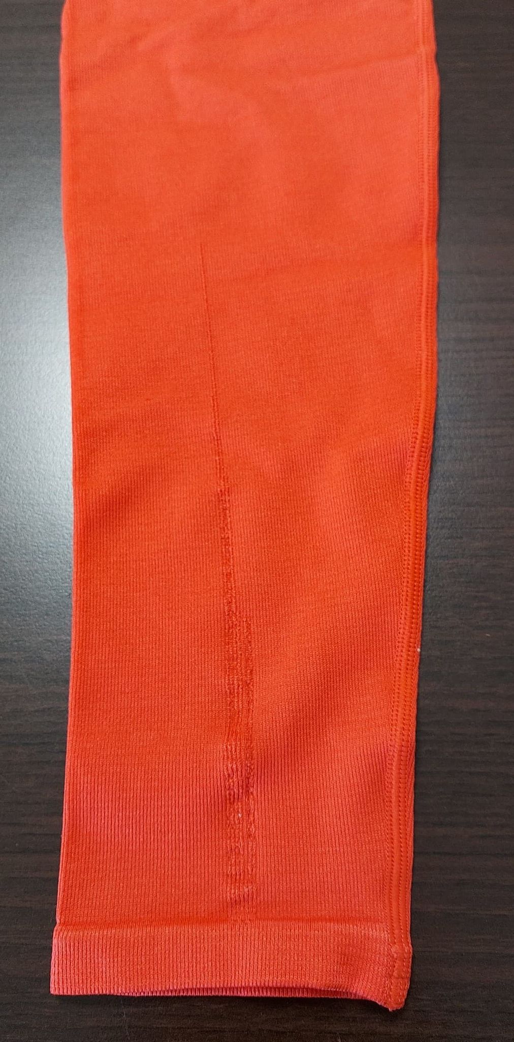 Bezszwowe czerwone prążkowane legginsy z nogawkami 7/8 defekt S