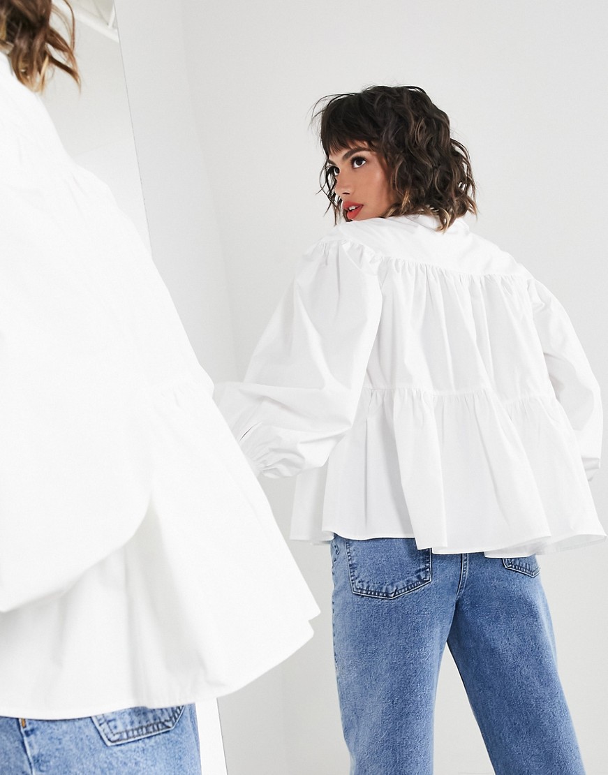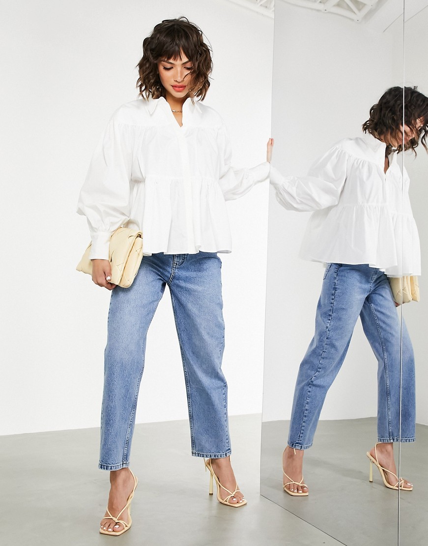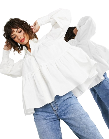Biała bawełniana koszula oversize o trapezowym kroju 40