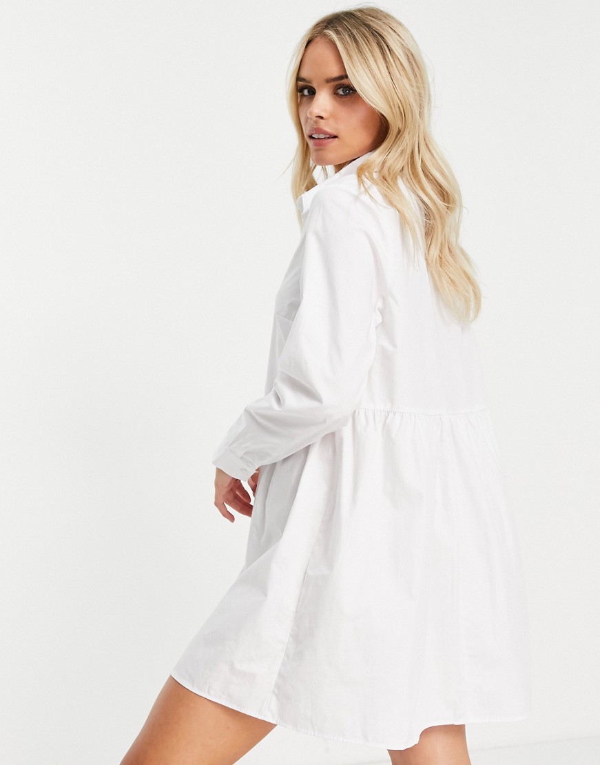 Biała bawełniana sukienka koszulowa mini o luźnym kroju 34