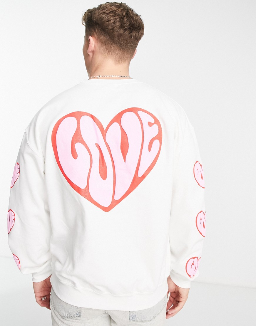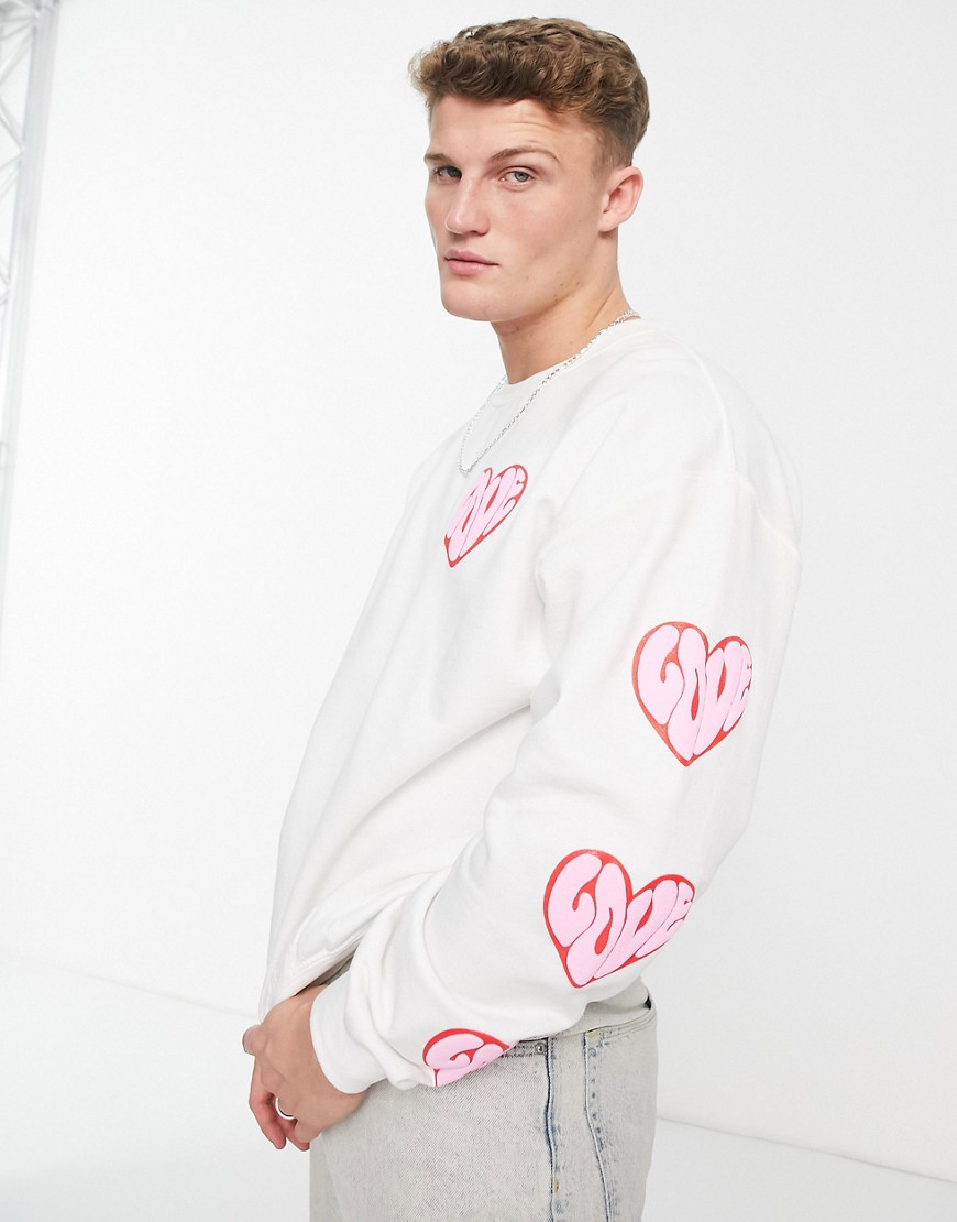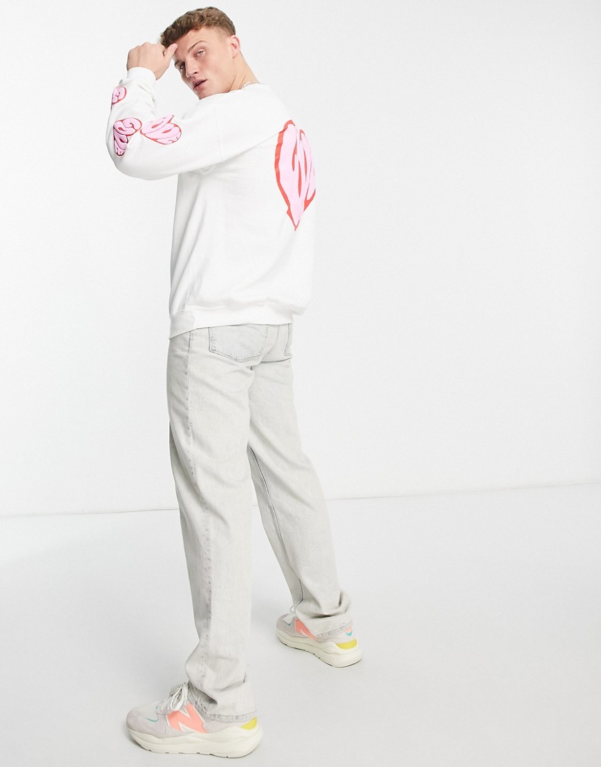 Biała bluza dresowa oversize z nadrukami defekt XS